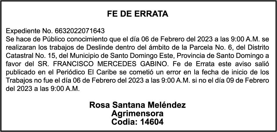 . 7 elCaribe, Martes 14 De Febrero De 2023 LEGALES