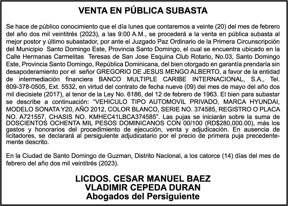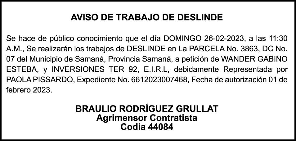 . 3 elCaribe, Martes 14 De Febrero De 2023 LEGALES