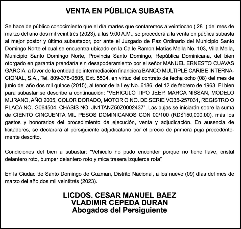 . 7 elCaribe, Jueves 9 De Marzo De 2023 LEGALES