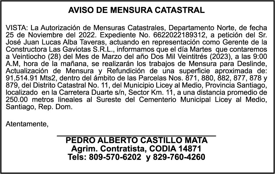 PERDIDA DE MATRICULA, del vehículo marca VOLKSWAGEN, Modelo PASSAT SE, año 2012, color GRIS, Placa No. A779540, Chasis No. 1VWBP7A37CC085375, a nombre de EDDY MANUEL GARCIA LUCIANO, CED. No. 026-0021315-7 PERDIDA DE PLACA No. OP02794, Camioneta MAZDA, modelo BT-50, Año 2014, Chasis MM7UNY0W4E0936453, a nombre de POLICIA NACIONAL