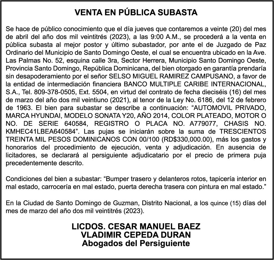 4. elCaribe, Miércoles 15 De Marzo De 2023 LEGALES