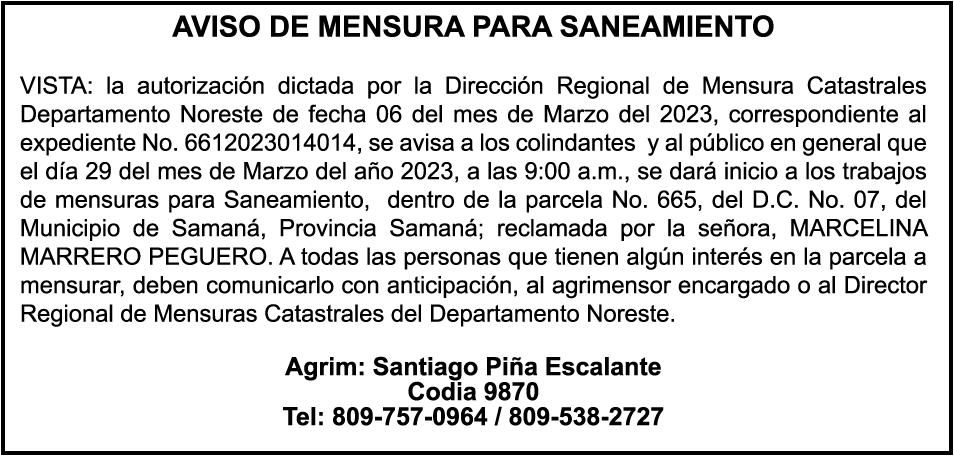 . 7 elCaribe, Miércoles 15 De Marzo De 2023 LEGALES