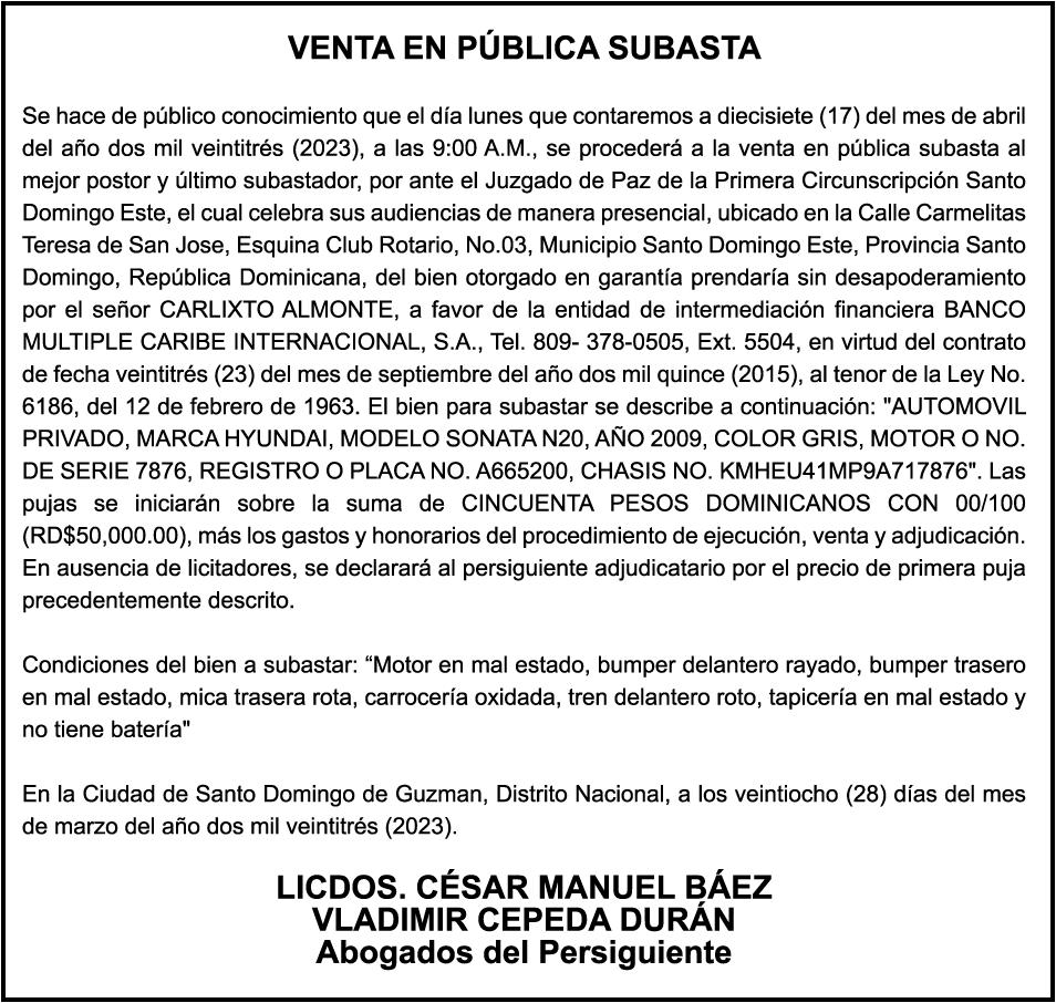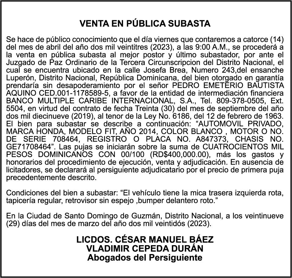 . 3 elCaribe, Miércoles 29 De Marzo De 2023 LEGALES
