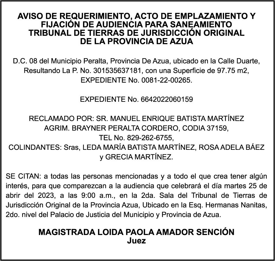 AVISO DE REGULARIZACION DE SOLAR No. 21 AB, manzana No.68, ubicado en el CALLEJON 11, Entrando por la calle FRAY JUAN DE UTRERA y la ALBERTO LARANCUET, de la ciudad de La Romana, Rep. Dom., no se encuentra a nombre de ninguna persona e institución.