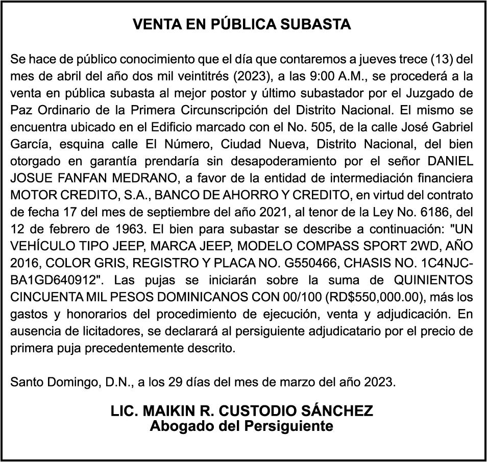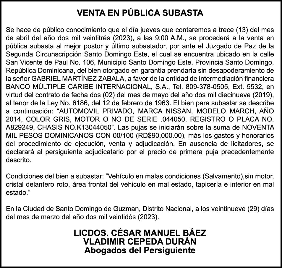 4. elCaribe, Miércoles 29 De Marzo De 2023 LEGALES