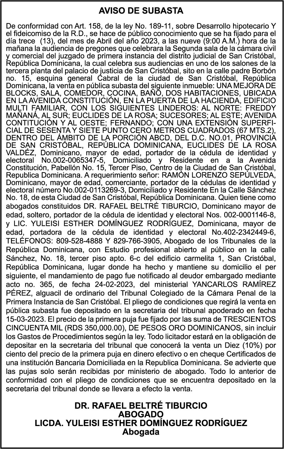 8. elCaribe, Miércoles 29 De Marzo De 2023 LEGALES