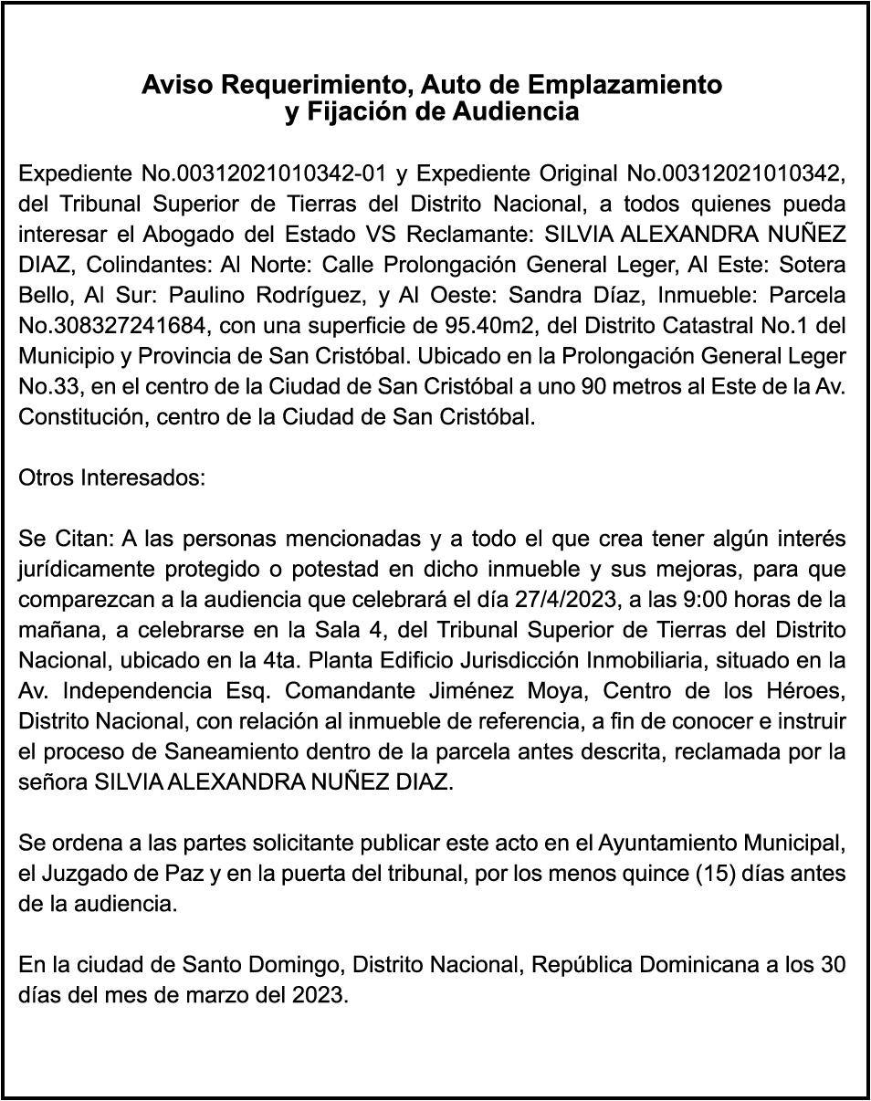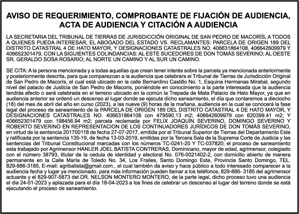 9:00 A.M. Audiencia Pública del Tribunal Constitucional. Sala Augusta, Suprema Corte de Justicia.
