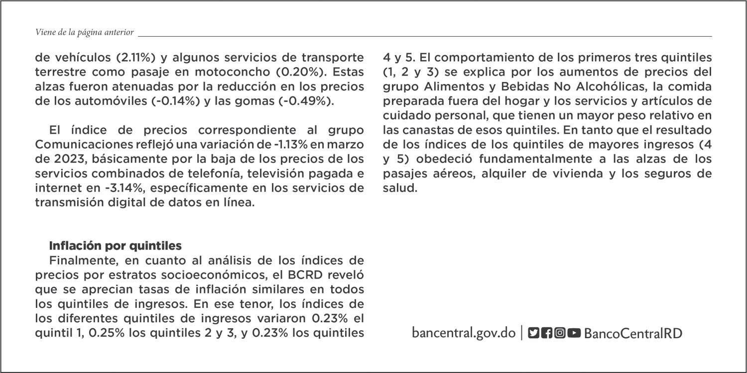 DESACELERACIÓN. El Banco Central informa que esta tasa corresponde a la más baja verificada en los últimos 27 meses; la variación del IPC en marzo fue de 0.21% P.23