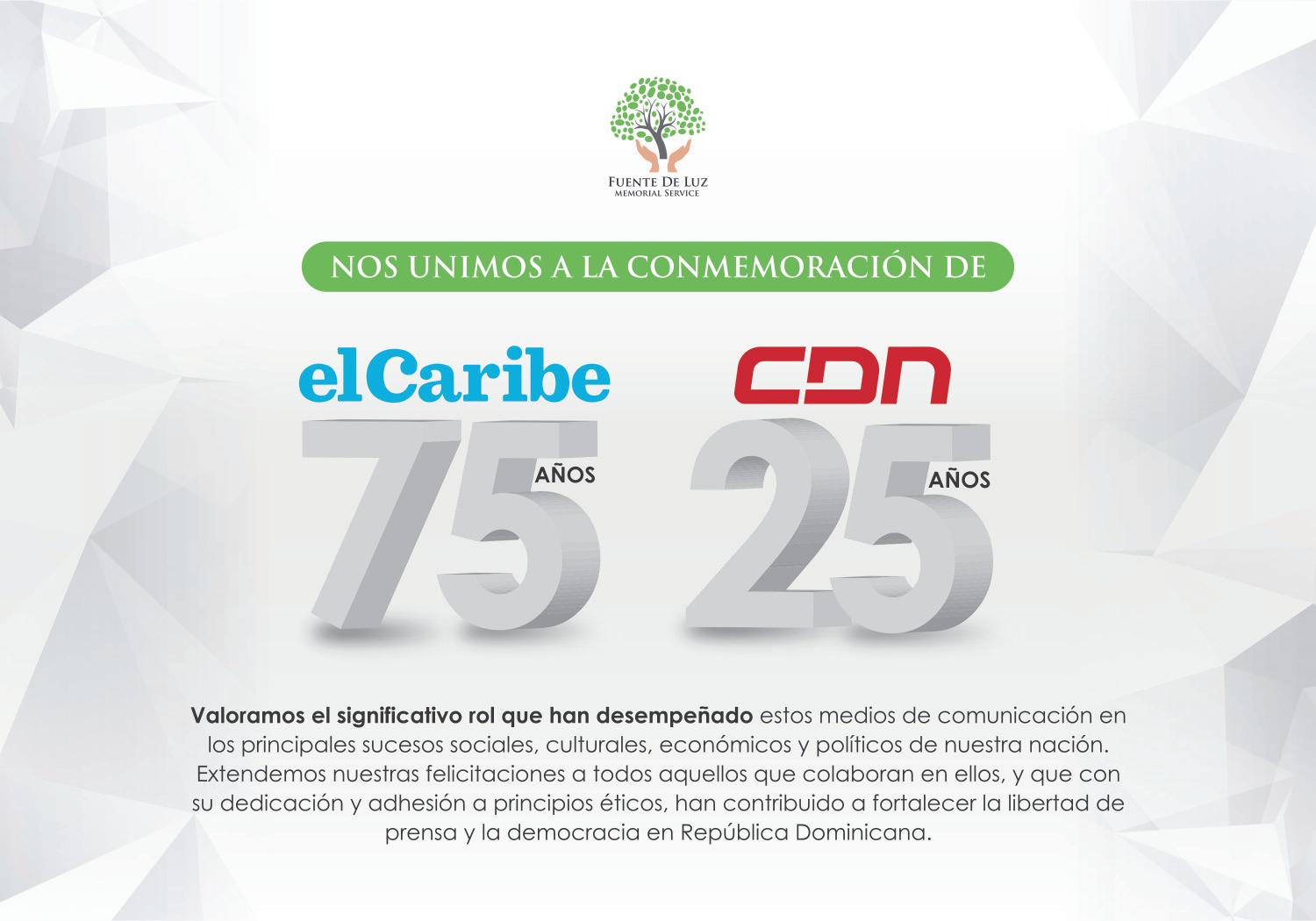 RODRÍGUEZLa ocasión será propicia para destacar los aportes durante estos 75 años del periódico elCaribe a la libertad de prensa, al fortalecimiento de la democracia y a la sociedad. Al tiempo que se analizará la contribución al quehacer periodístico dominicano que entrega CDN 37, único canal de noticias 24 horas, pionero en coberturas nacionales. Ambos medios se erigen como escuela empírica del periodismo dominicano, destacados en la formación y proyección de periodistas nacionales y extranjeros.