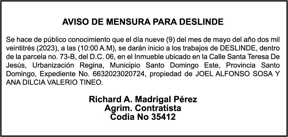 . 7 elCaribe, Miércoles 26 De Abril De 2023 LEGALES