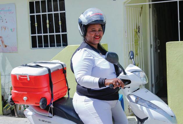 En una pasola y con una neverita, Cindy Vickiana se mueve cada día por diferentes comunidades con sus productos