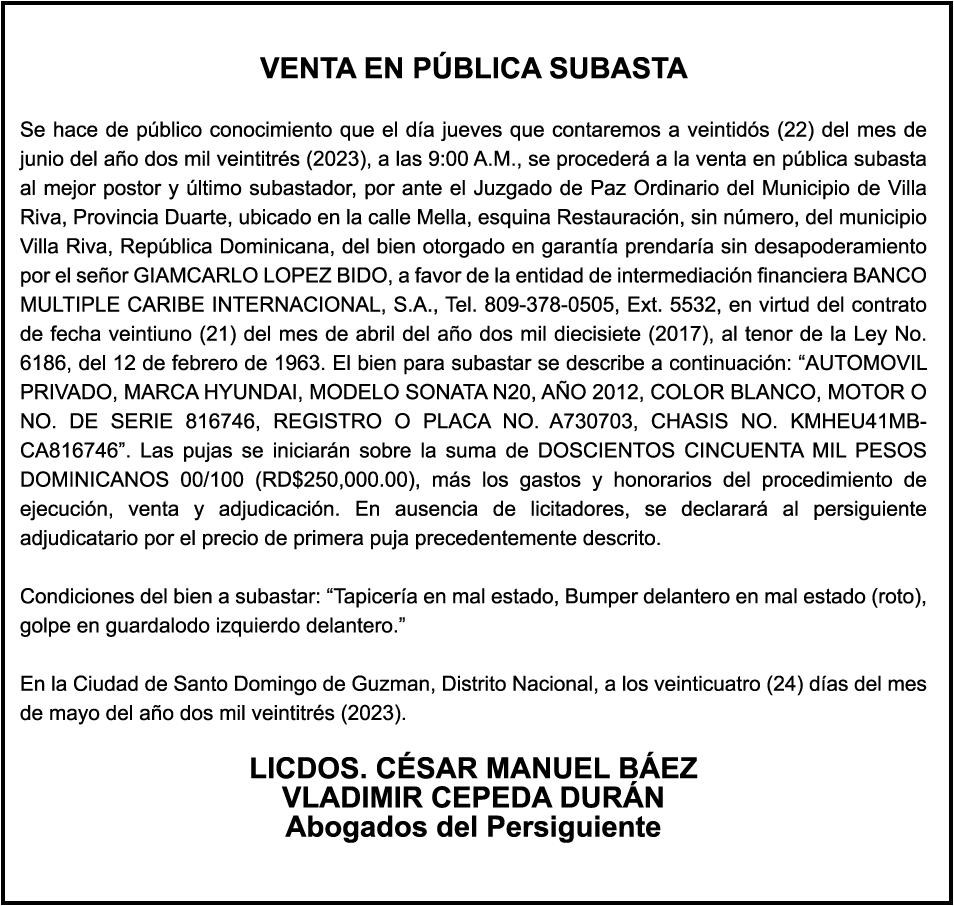 . 3 elCaribe, Miércoles 24 De Mayo De 2023 LEGALES