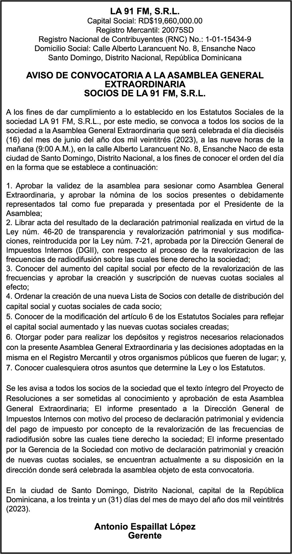 . 7 elCaribe, Jueves 1 De Junio De 2023 LEGALES