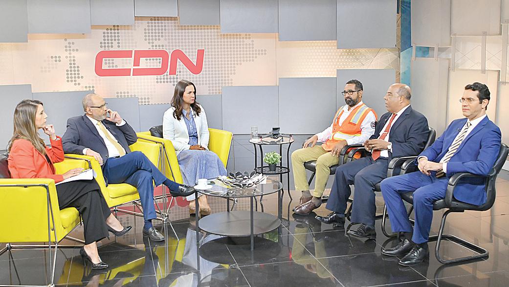 Miguel Campusano, subdirector de Onamet; Juan Salas, director de la Defensa Civil; y el analista Jean Suriel disertan en panel.