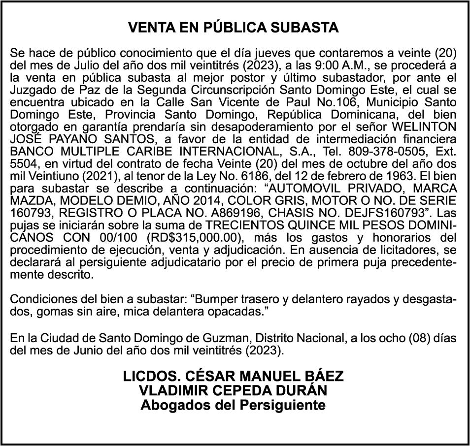 2. elCaribe, Jueves 8 De Junio De 2023 LEGALES