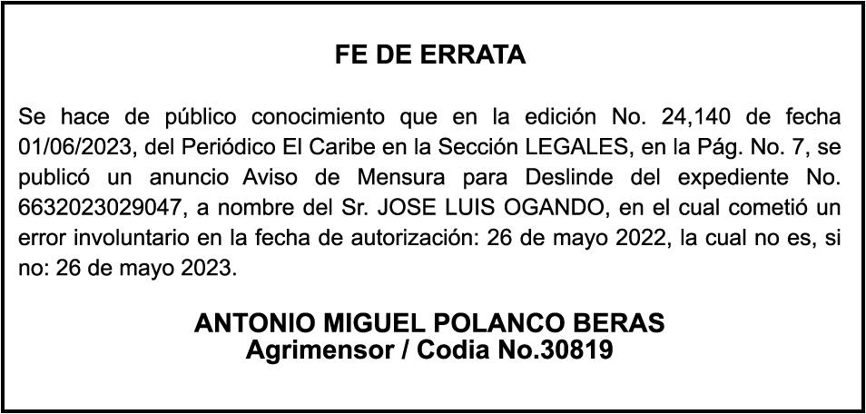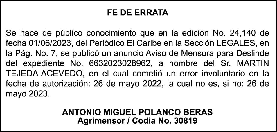 . 7 elCaribe, Jueves 8 De Junio De 2023 LEGALES