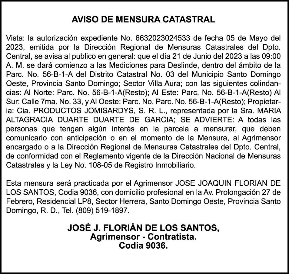 El Instituto Agrario Dominicano (IAD), a través de su Departamento Jurídico, acorde con el derecho de respeto a la propiedad privada, apoya las acciones legales emprendidas por las autoridades para el desalojo de invasores que se encontraban en la parcela 28, distrito catastral número 11, paraje La Luisa Blanca, sector El Laurel, en Monte Plata. Estas medidas de desalojo, utilizando la fuerza pública, de supuestas familias de productores agrícolas, se amparan en los certificados de títulos números 30007 3903 y 1200010345, a nombre del Instituto Agrario Dominicano. El IAD, organismo que ejecuta los programas de Reforma Agraria en el paíso, actúa con firmeza contra quienes violen la propiedad privada, tanto de particulares como estatales.