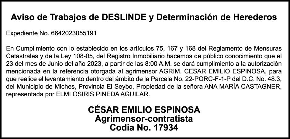 . 7 elCaribe, Lunes 12 De Junio De 2023 LEGALES
