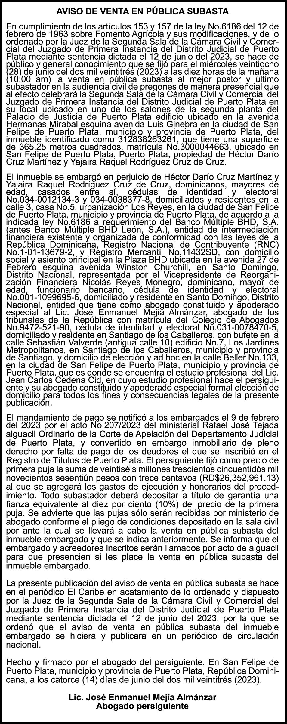 6. elCaribe, Miércoles 14 De Junio De 2023 LEGALES