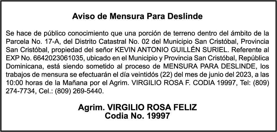 . 7 elCaribe, Miércoles 14 De Junio De 2023 LEGALES