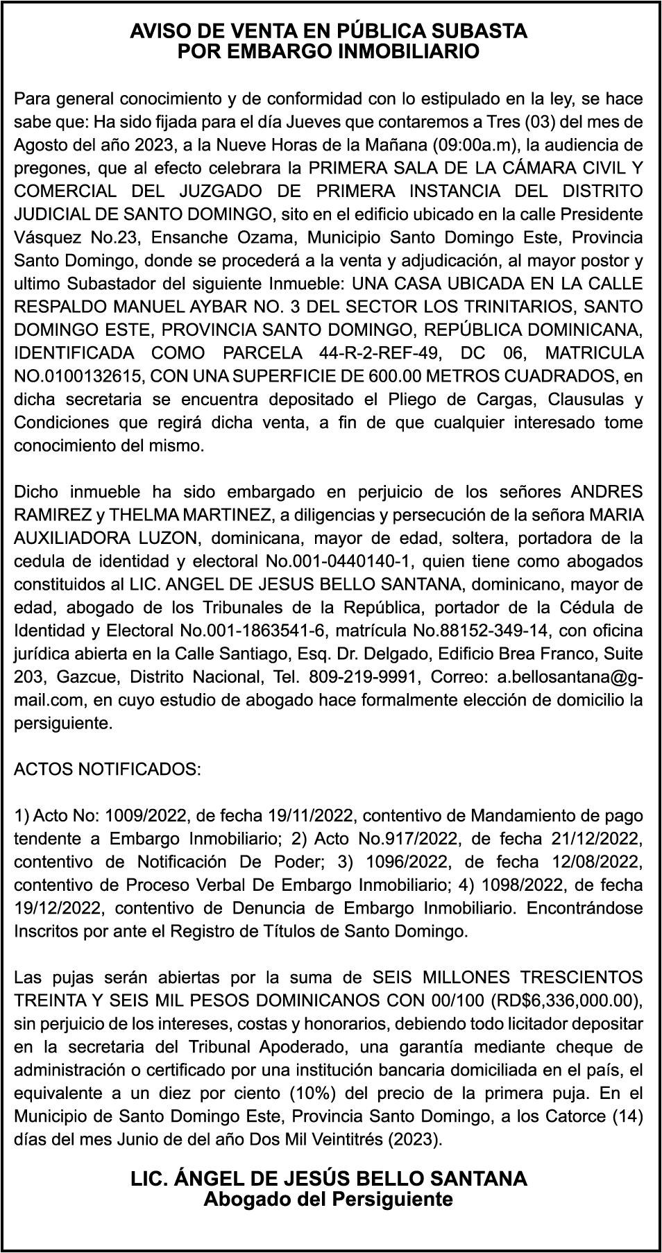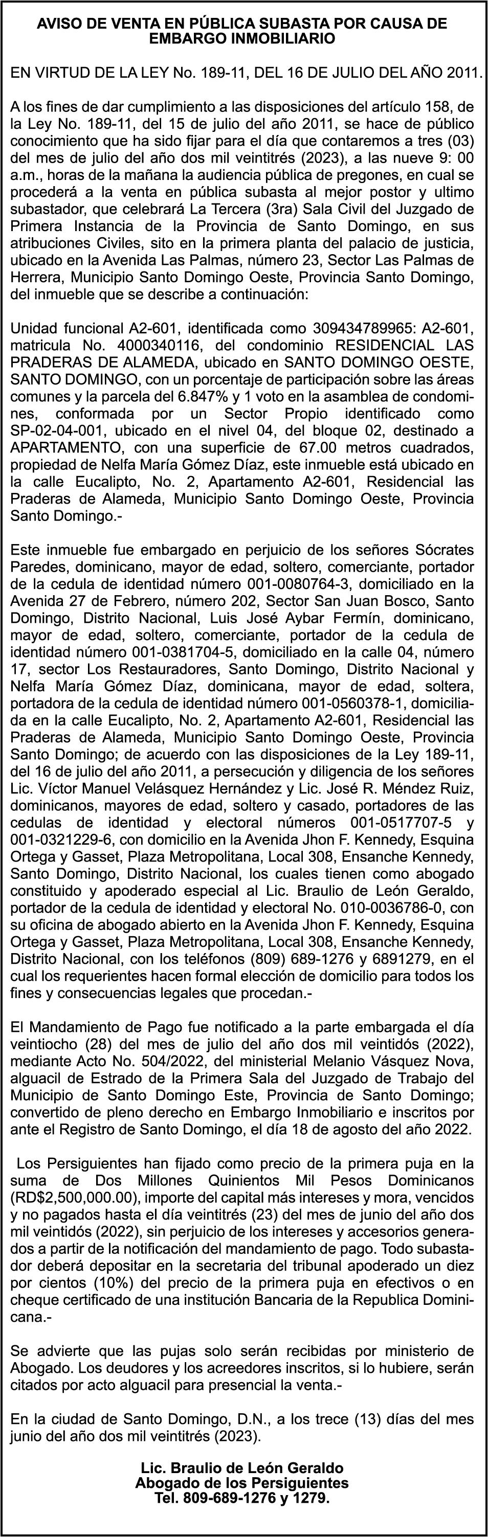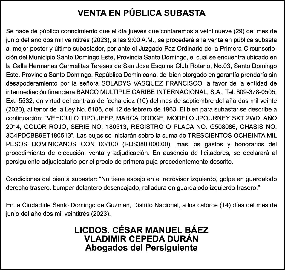 . 3 elCaribe, Miércoles 14 De Junio De 2023 LEGALES