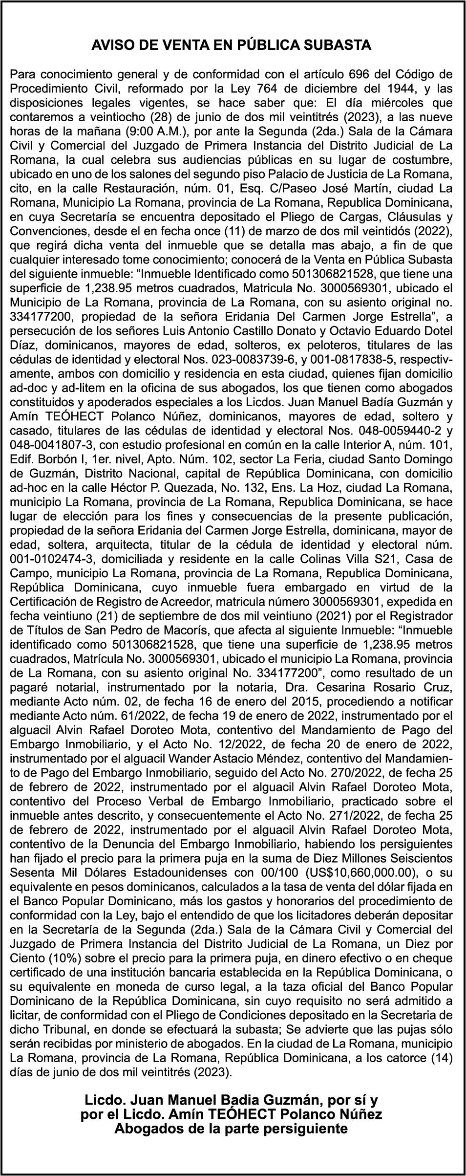 2. elCaribe, Jueves 15 De Junio De 2023 LEGALES