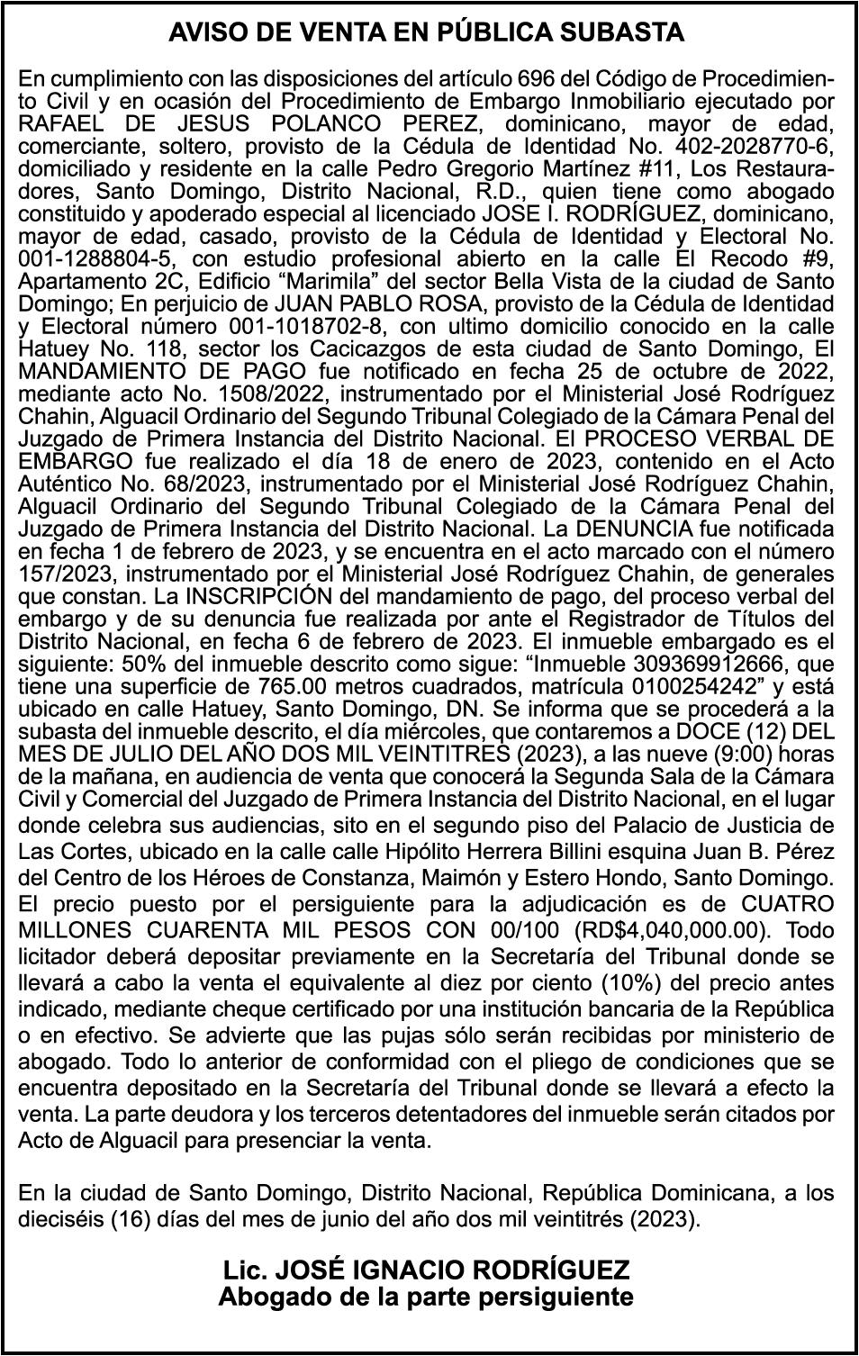 2. elCaribe, Viernes 16 De Junio De 2023 LEGALES
