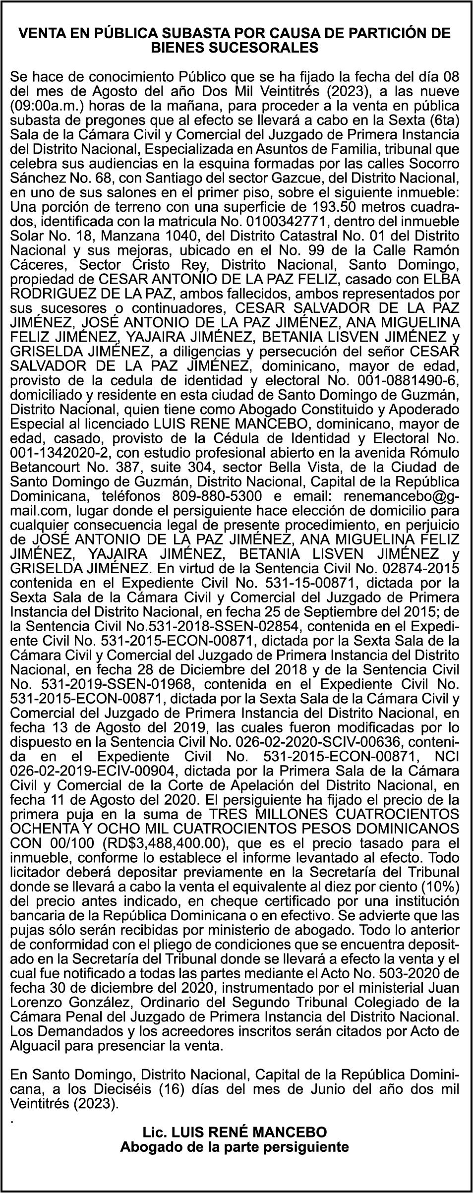 6. elCaribe, Viernes 16 De Junio De 2023 LEGALES
