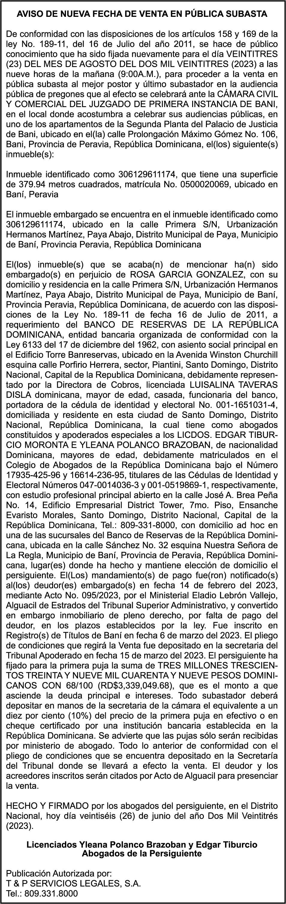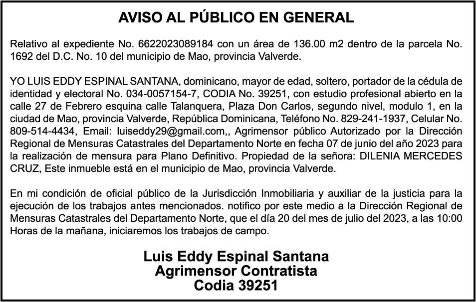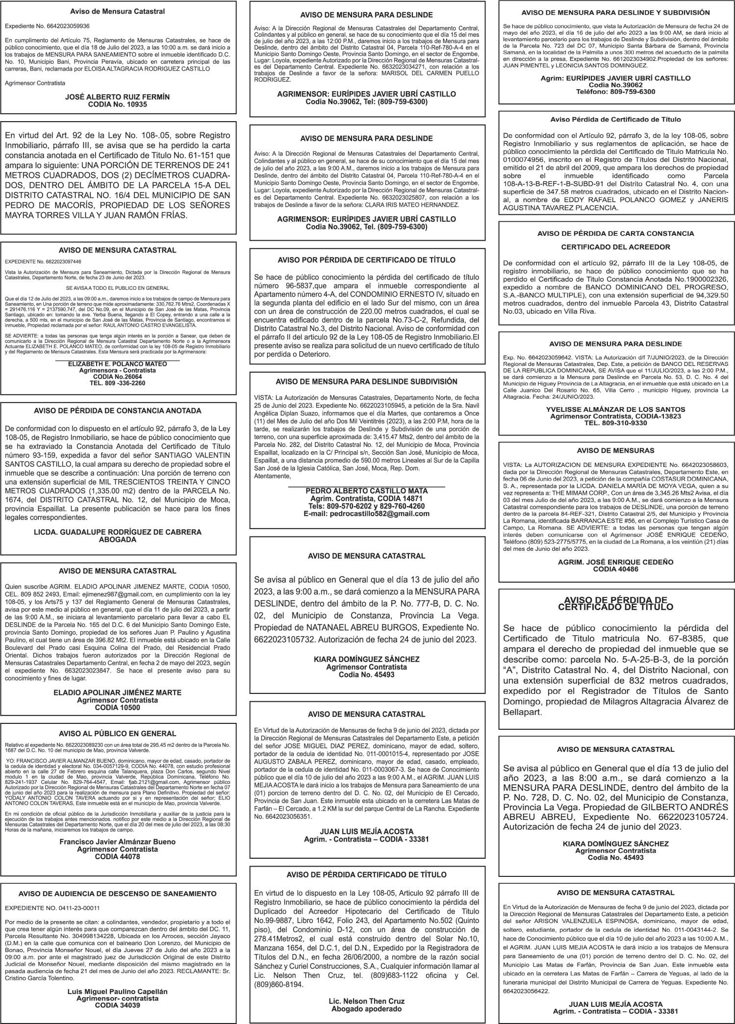 SE hace de público conocimiento la pérdida de certificado de depósito número 726767098 emitido Banco Popular Dominicano, S. A., a favor de JULIO ANTONIO LANTIGUA DIAZ Cédula de Identidad y Electoral número 001-0882605-8, expedido en fecha 22 de agosto de 2005 por el monto de (RD$18,000.00).