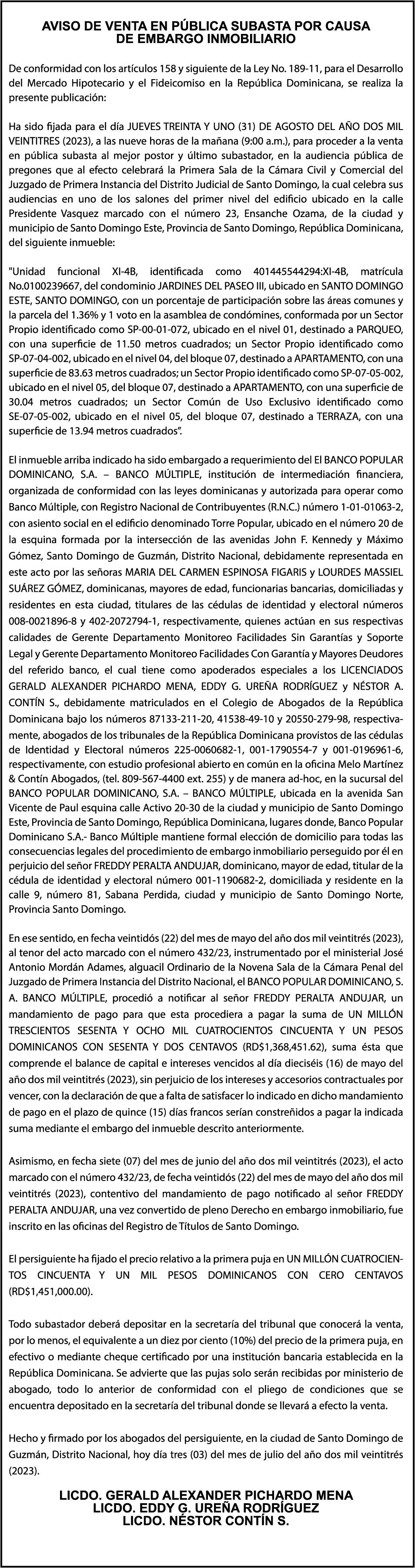 . 11 elCaribe, MARTES 4 DE JULIO DE 2023 LEGALES