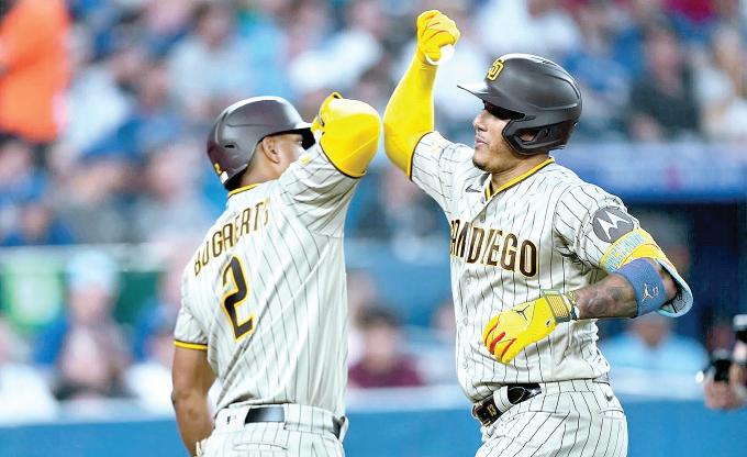 FOTO: F.E. Juan Soto, Manny Machado y Gary Sánchez conectaron de jonrón en la fácil victoria de los Padres de San Diego ante los Azulejos de Toronto. P.34