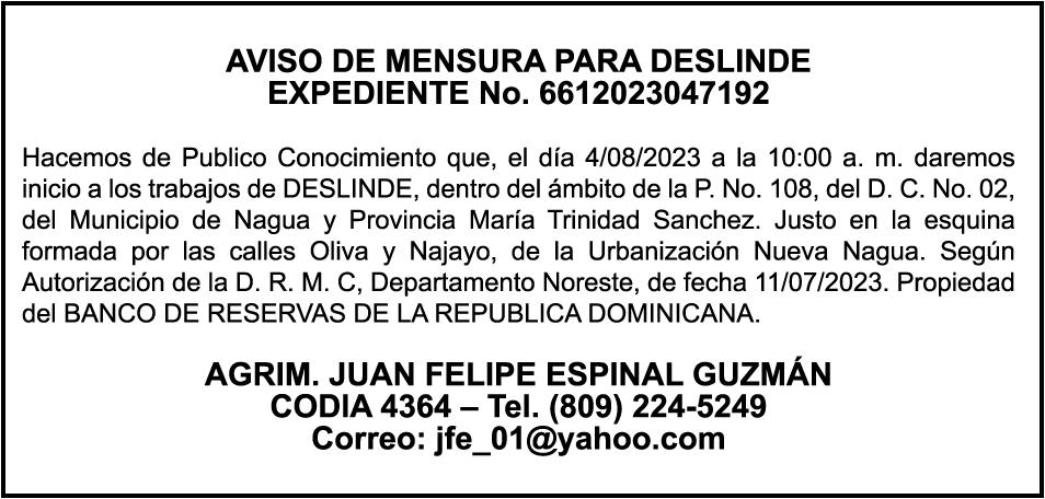 MIÉRCOLES 19 DE JULIO DE 2023 www.elcaribe.com.do SANTO DOMINGO, RD / AÑO 75 / Nº 24,174 / $15.00