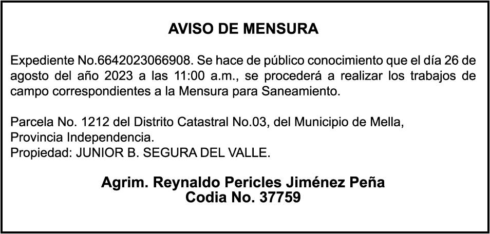 . 7 elCaribe, Miércoles 2 De Agosto De 2023 LEGALES