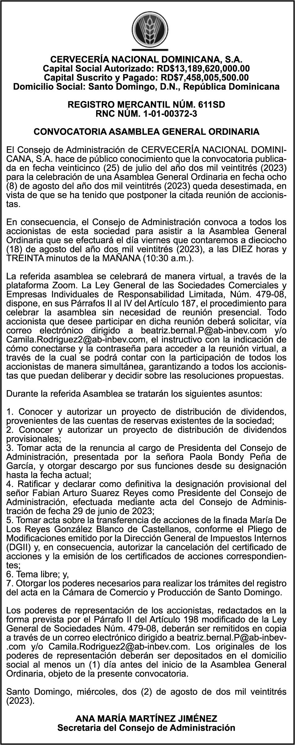 2. elCaribe, Miércoles 2 De Agosto De 2023 LEGALES