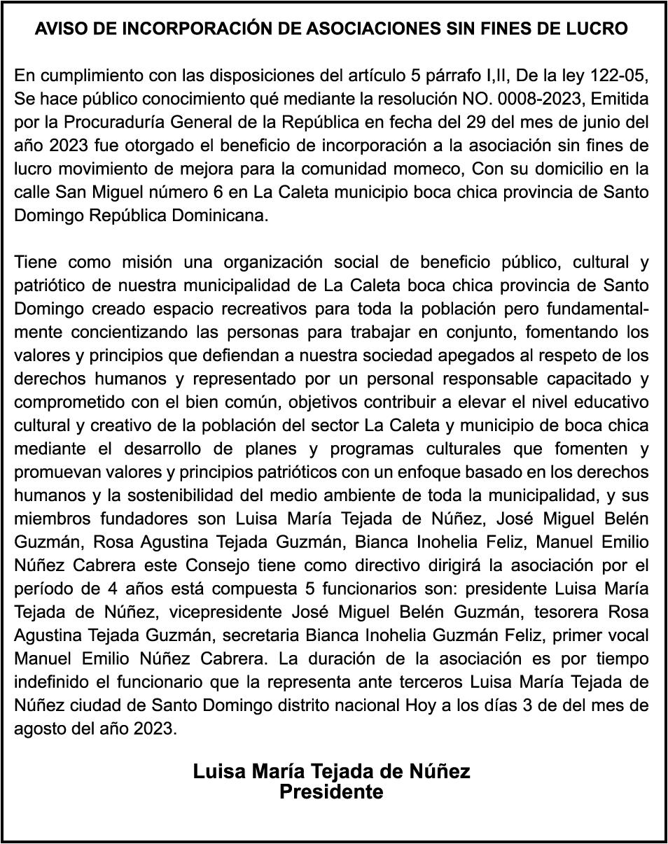 ANOMBRE DE MARGARITA DEL CARMEN LUGO