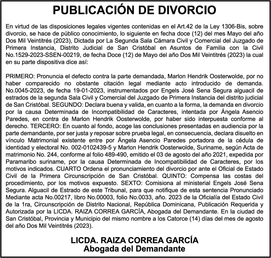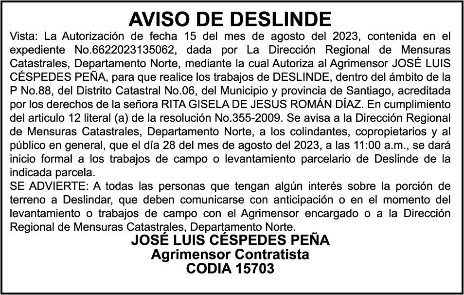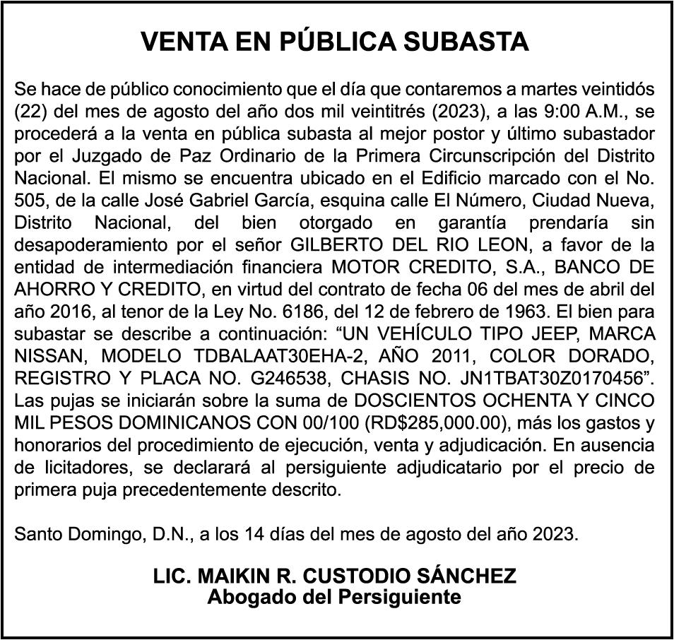 GIUDICELLI Cedula de identidad y Electoral número 001-18880624, expedido en fecha 9 de mayo de 2023 por el monto de (RD$5,300,930.47), más intereses generados a la fecha.