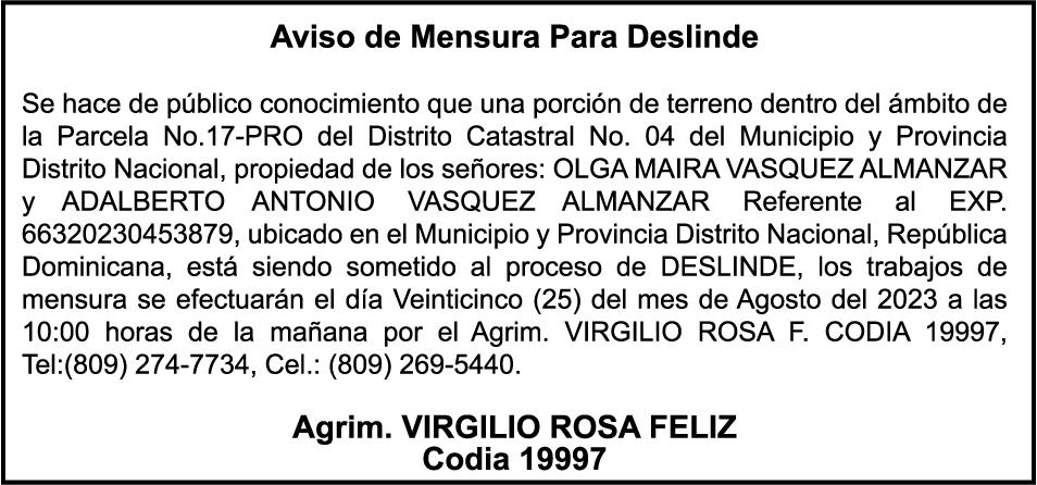 VASQUEZ, Ced. 0011525487-2.