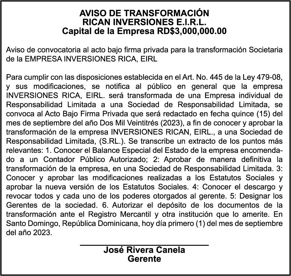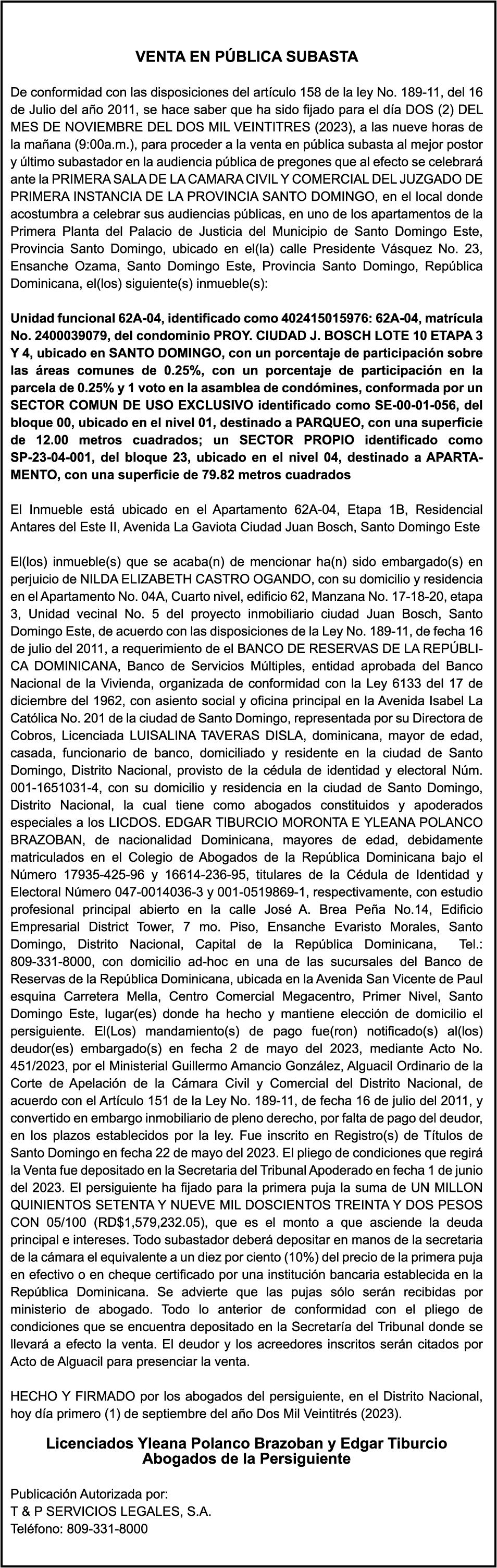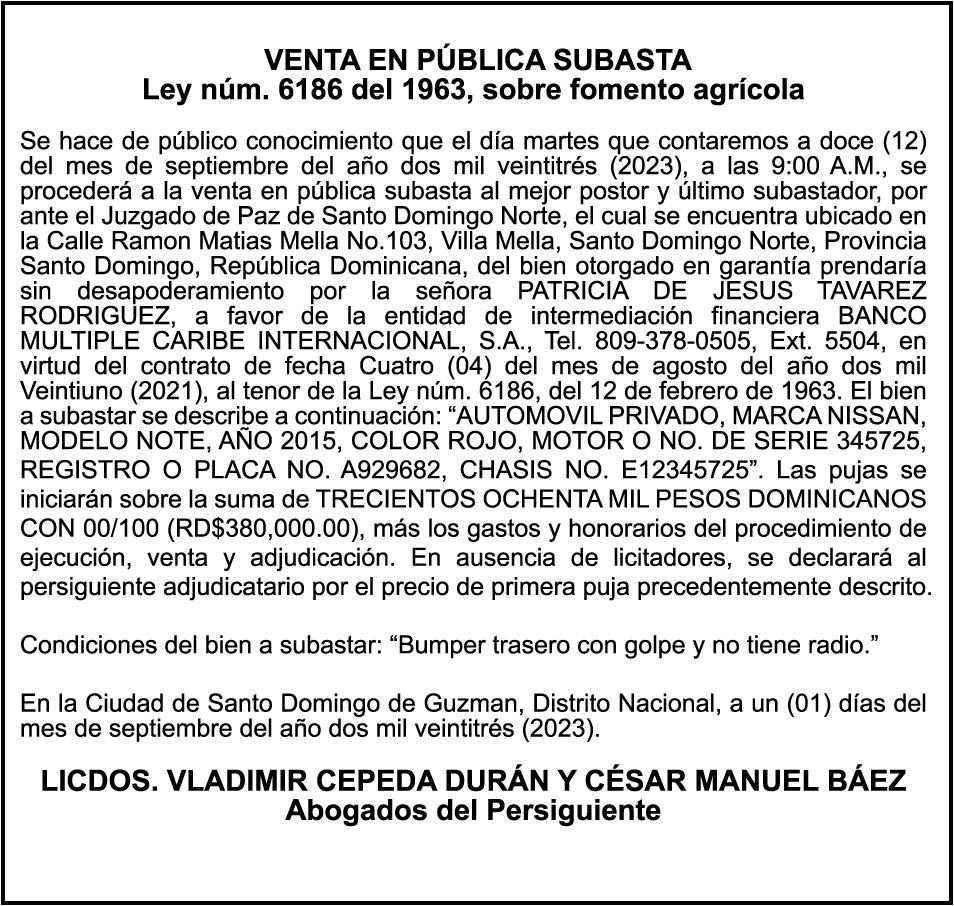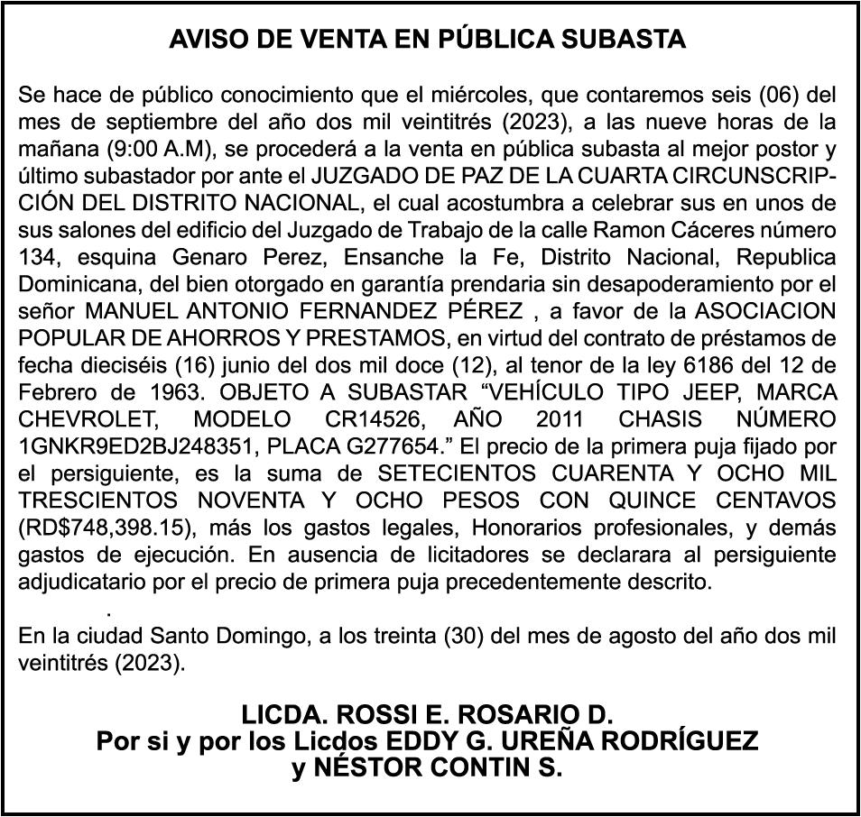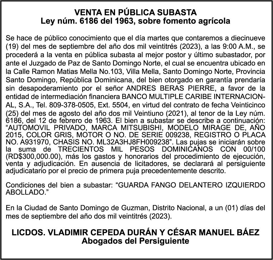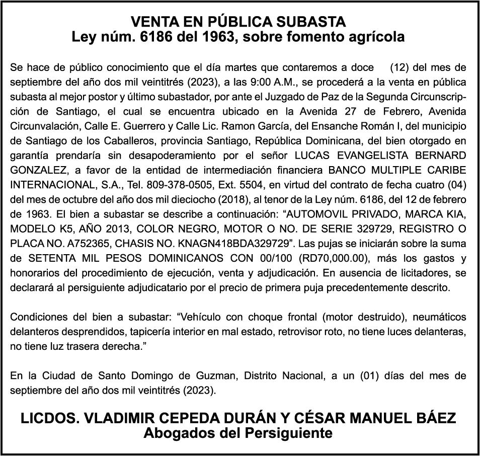 . 7 elCaribe, Viernes 1 De septiembre De 2023 LEGALES