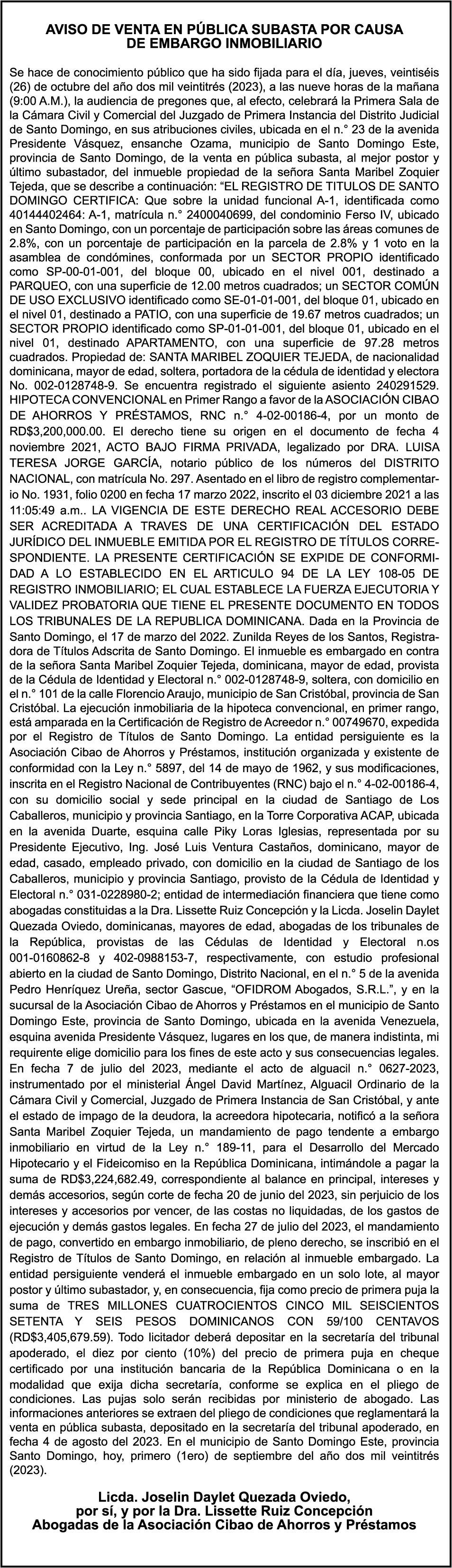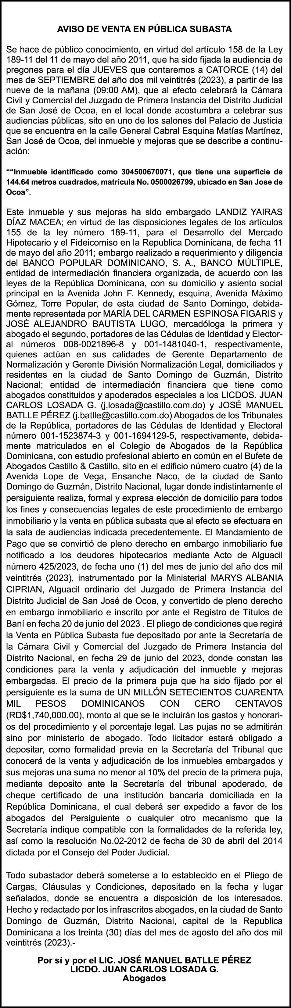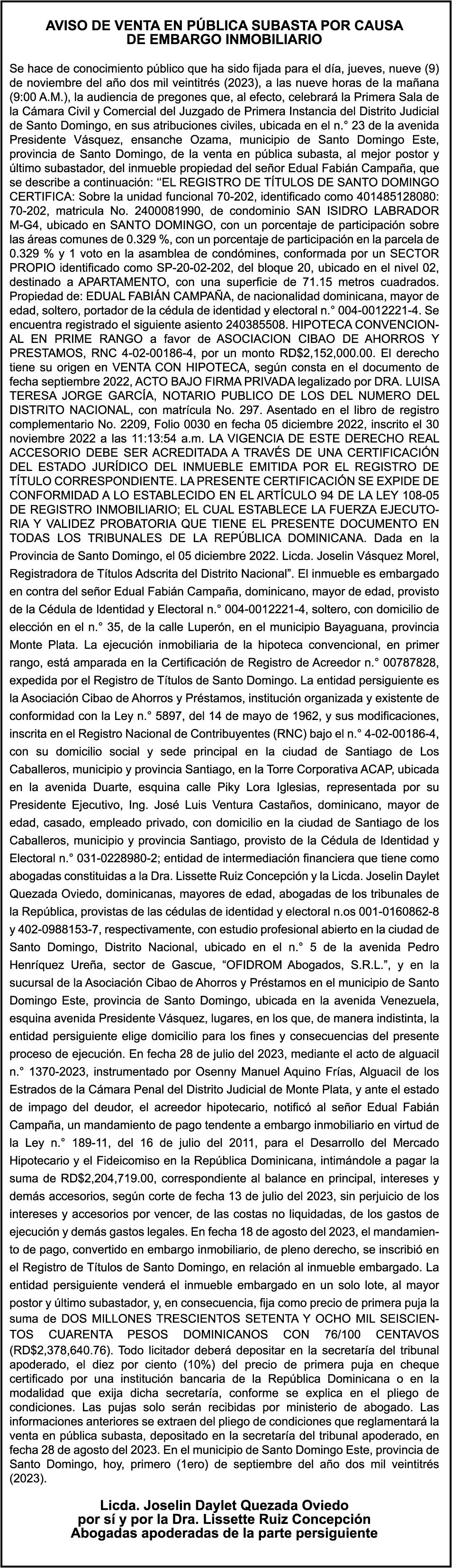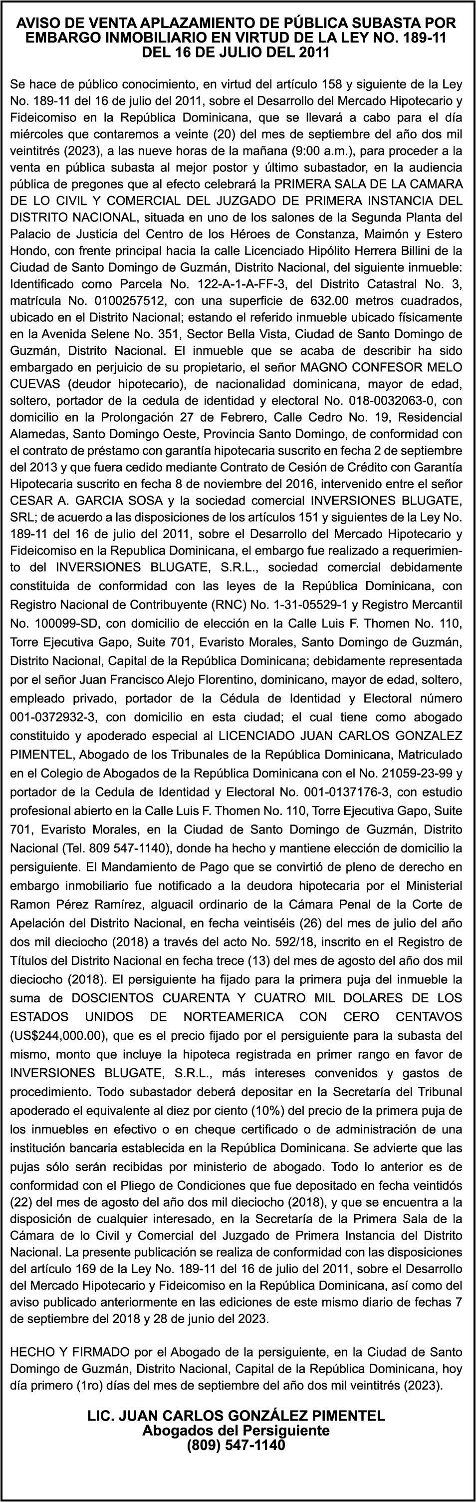 . 7 elCaribe, Viernes 1 De septiembre De 2023 LEGALES