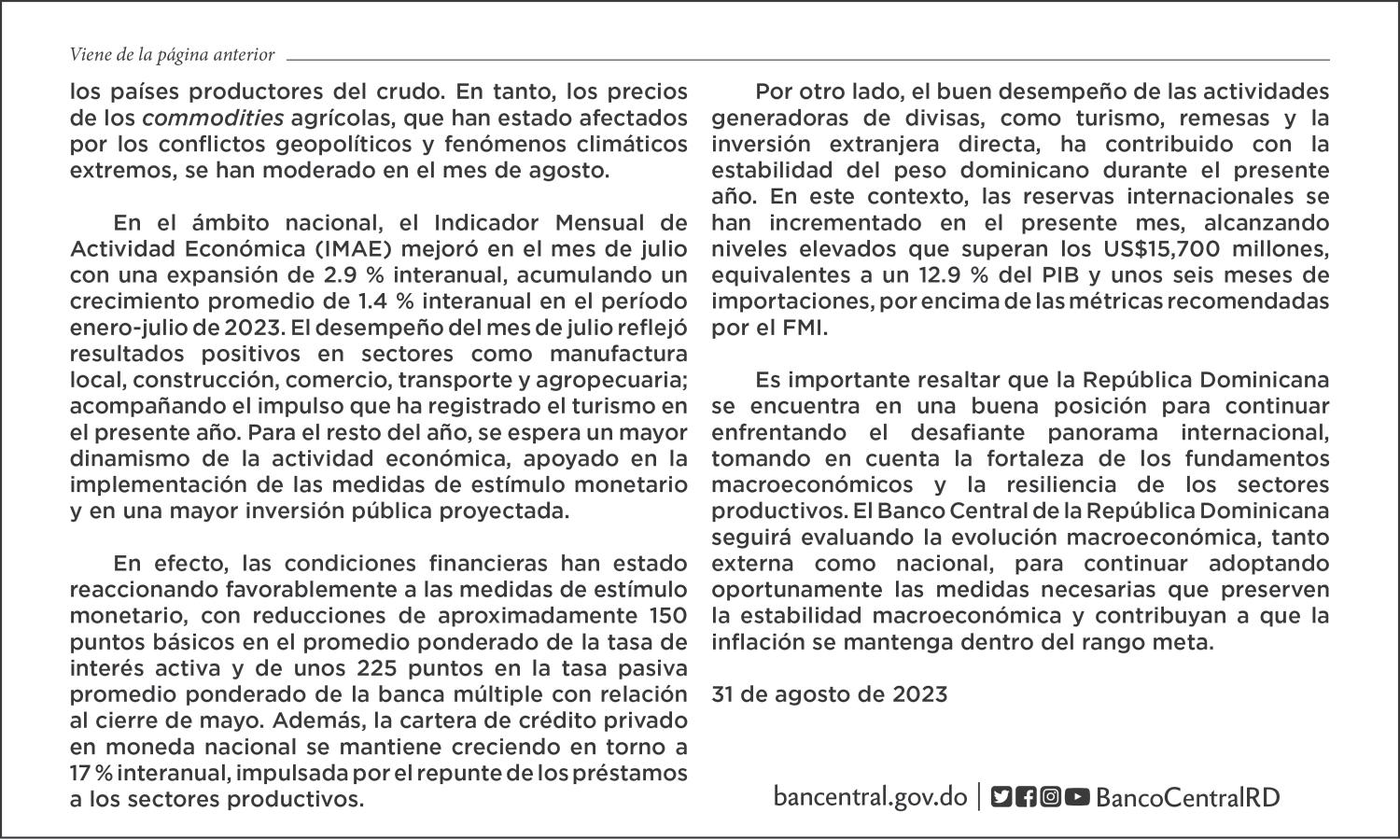 4 PANORAMA elCaribe, VIERNES 1 DE SEPTIEMBRE DE 2023