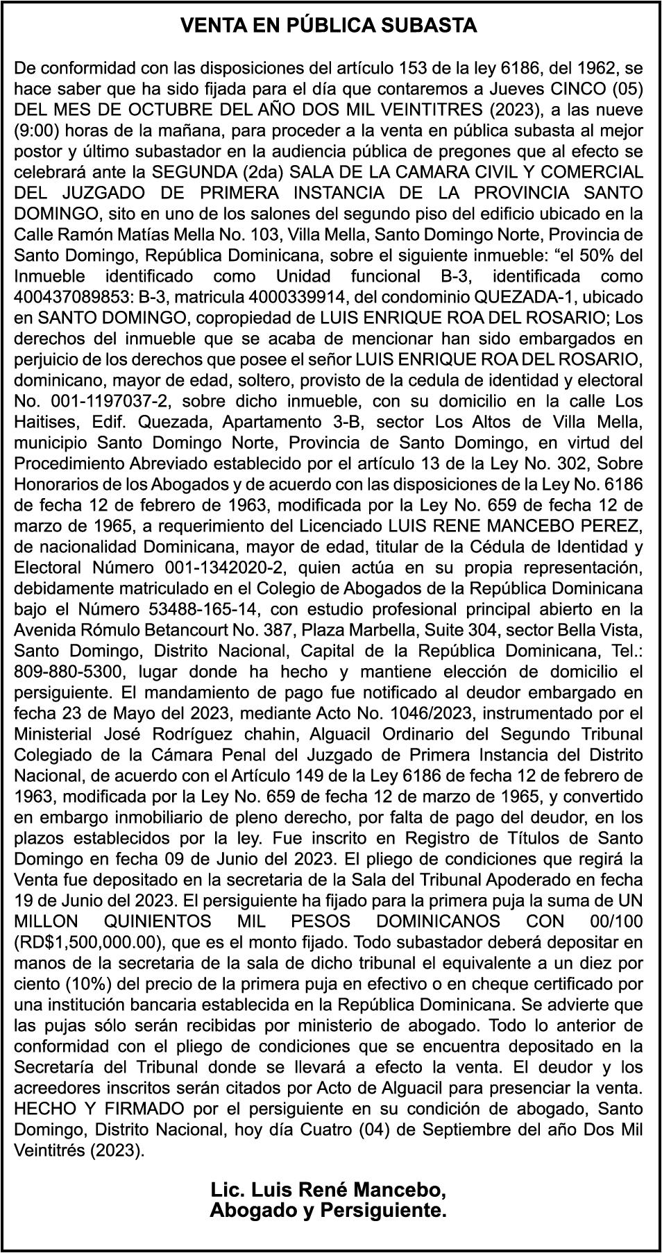 . 5 elCaribe, Lunes 4 De septiembre De 2023 LEGALES