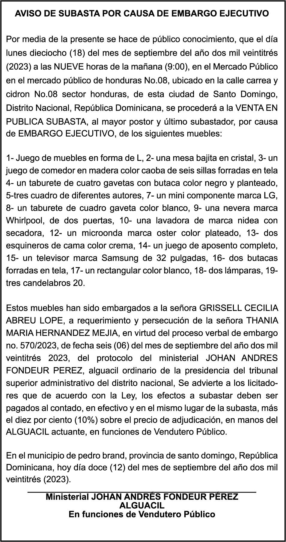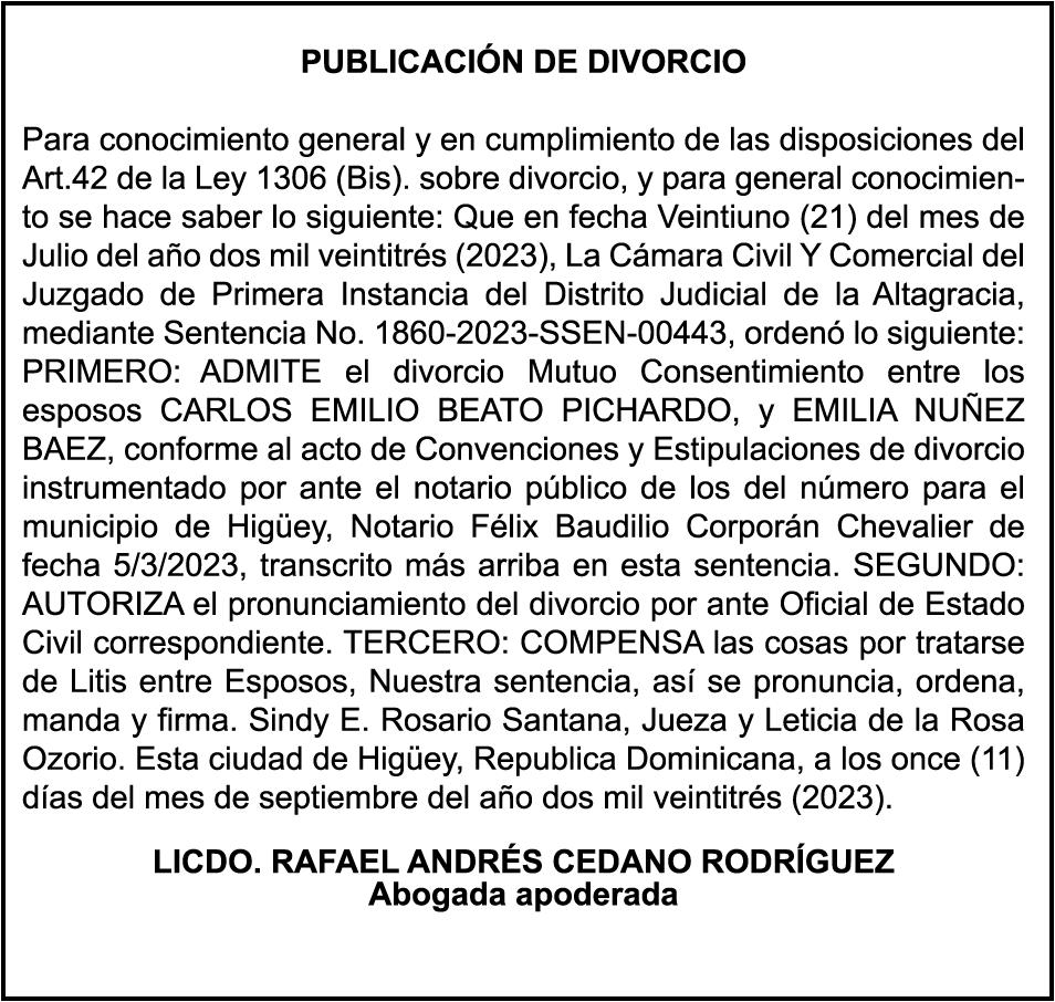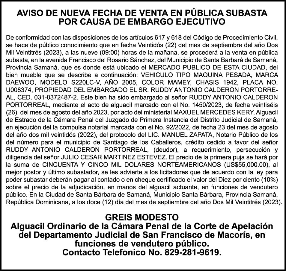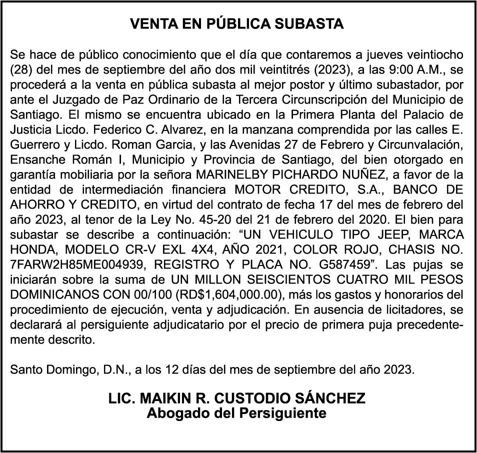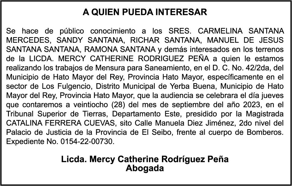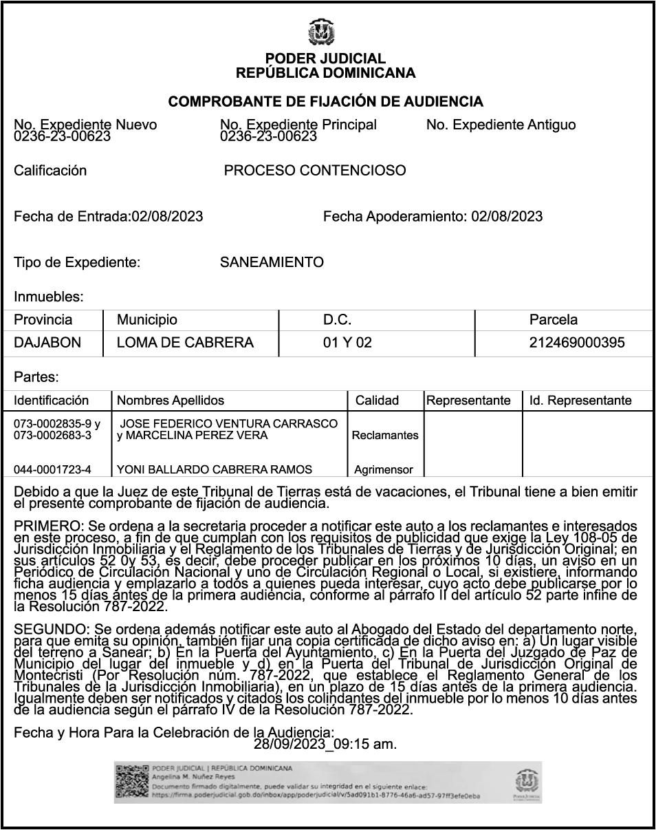 SANCHEZ Cedula de identidad y Electoral número 0011674897-1, expedido en fecha 23 de diciembre de 2022 por el monto de (RD$66,590.63), más intereses generados a la fecha.