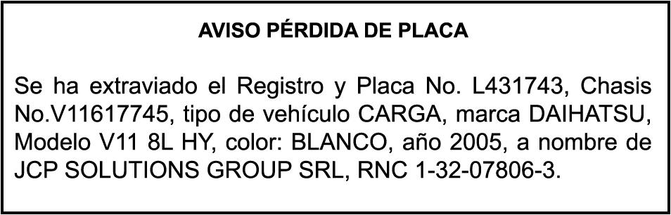 PERDIDA DE PLACA No. K2001242, Motocicleta BAJAJ, Modelo PLATINA 100 ES, Color NEGRO, Año 2021, Chasis MD2A75AX2MWF48256, a nombre de IVAN DISLA POLANCO.