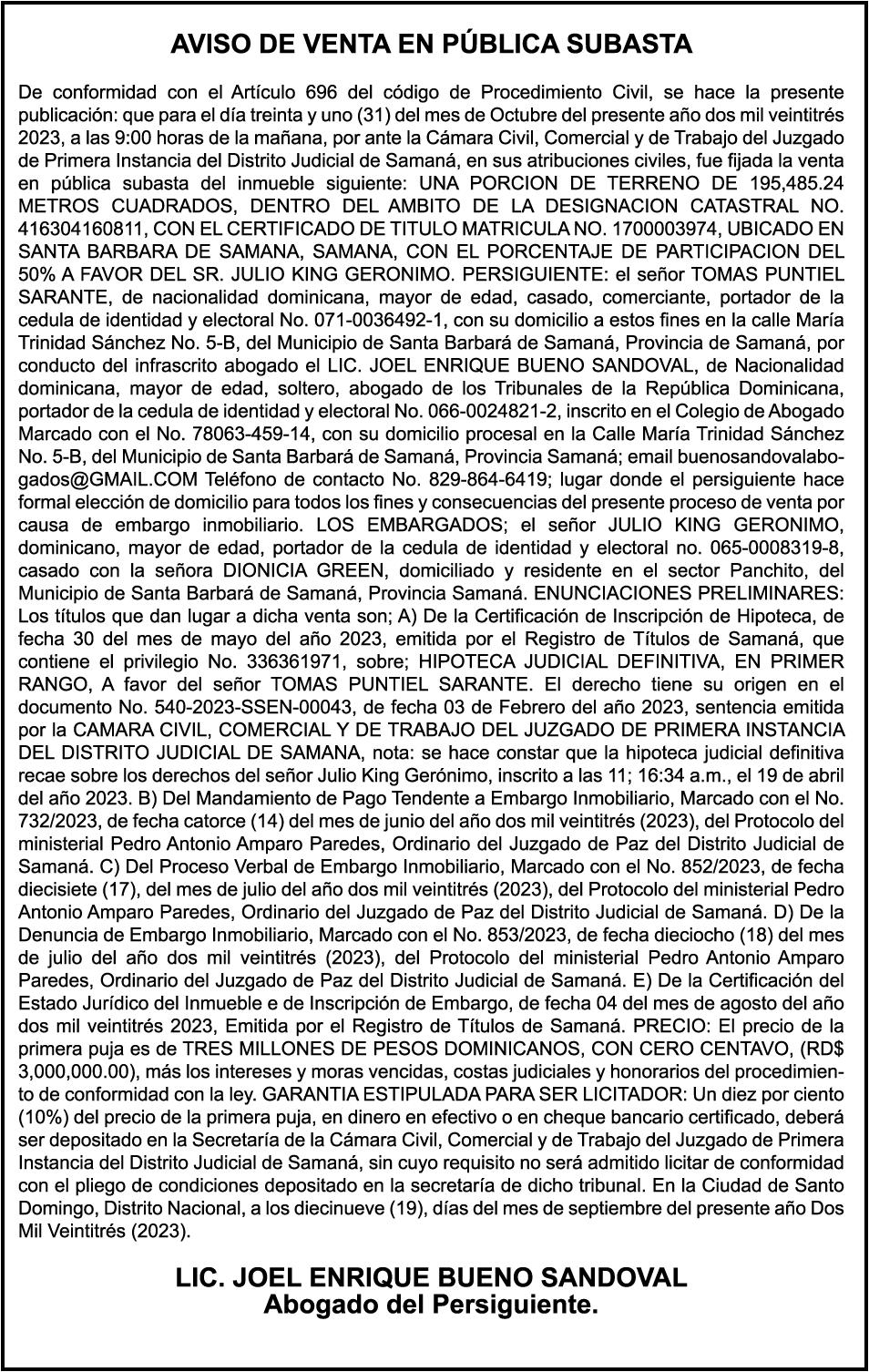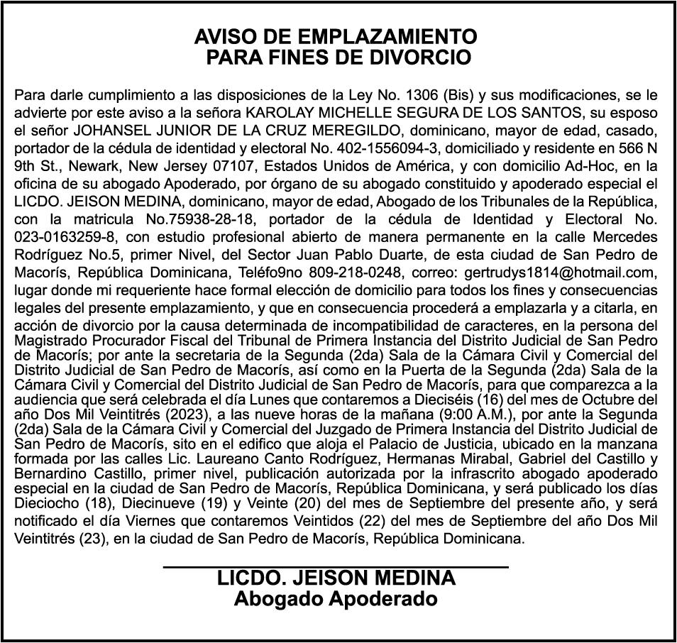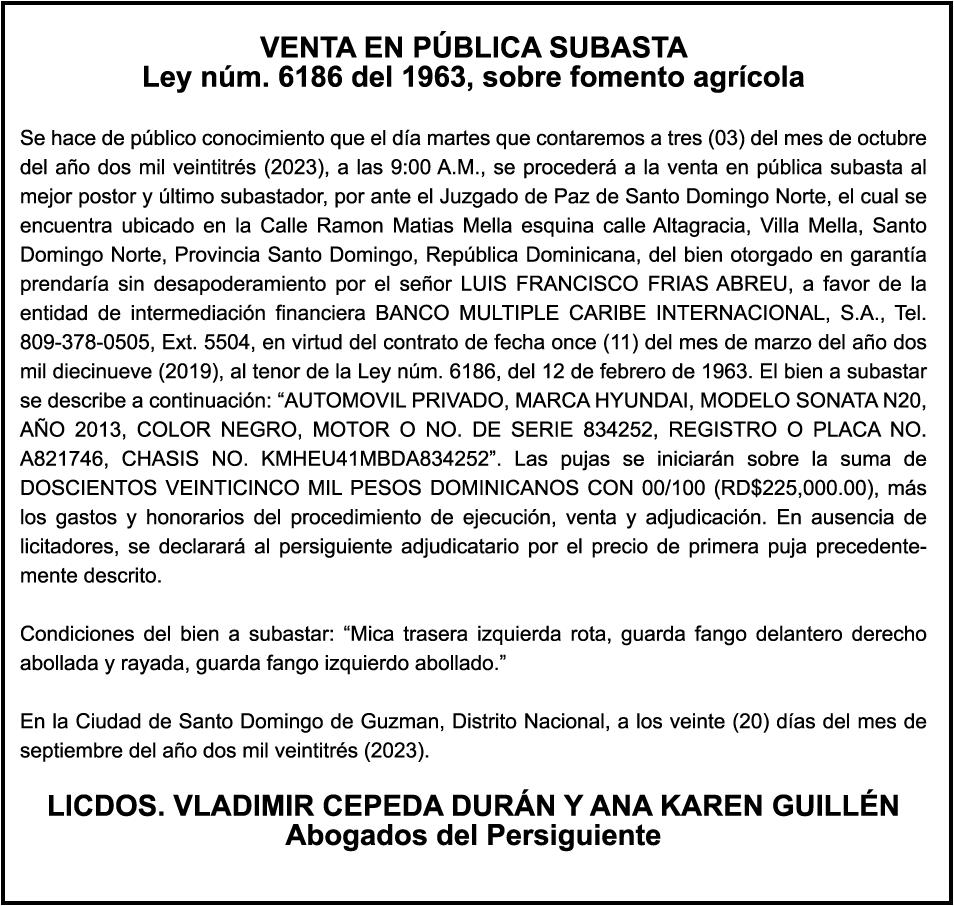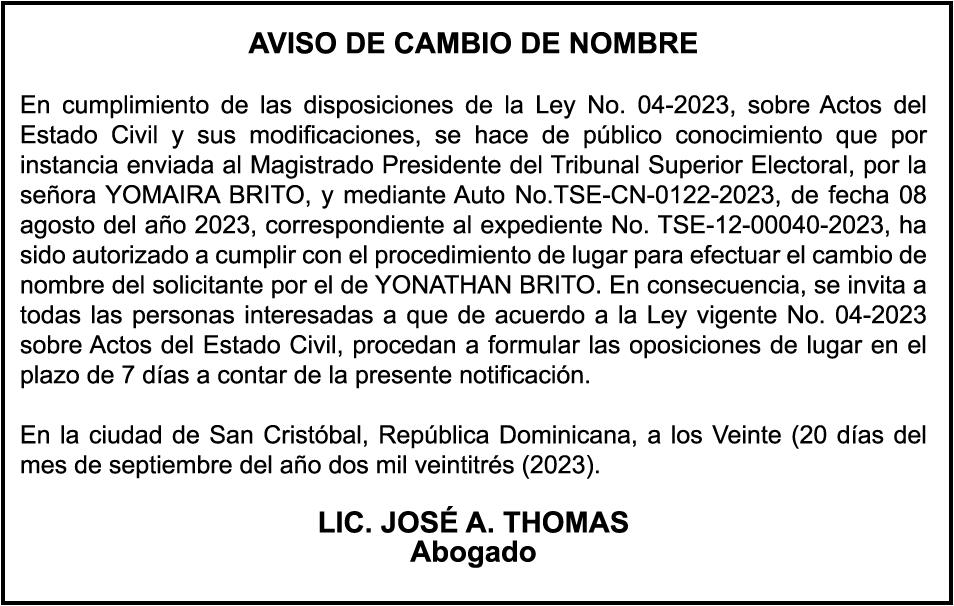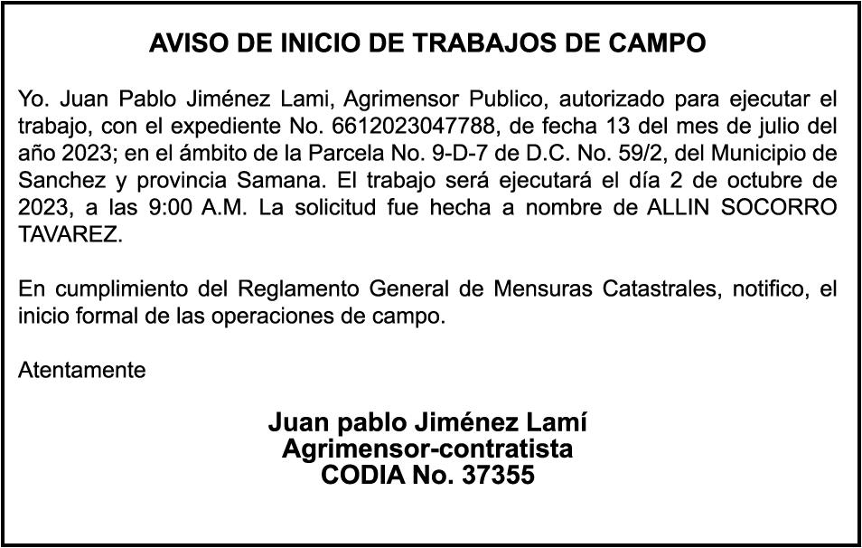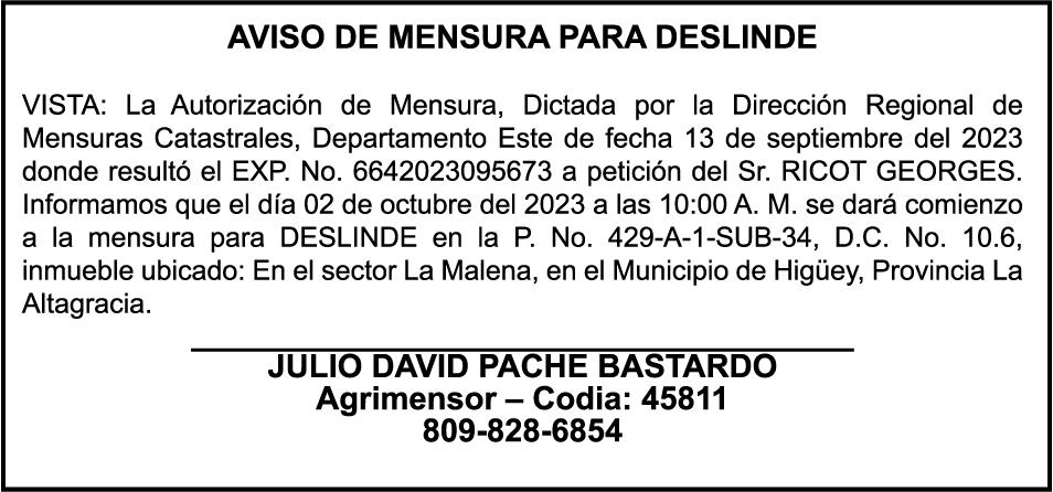 . 7 elCaribe, Miércoles 20 De septieMbre De 2023 LEGALES