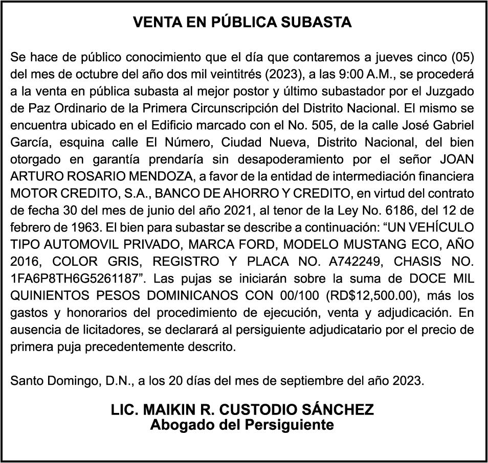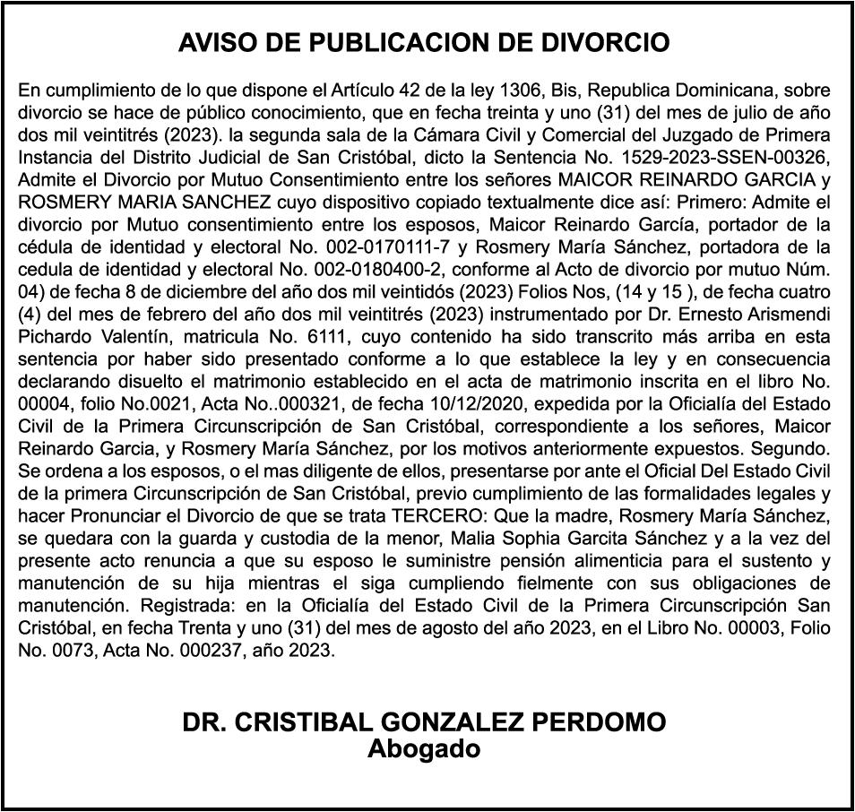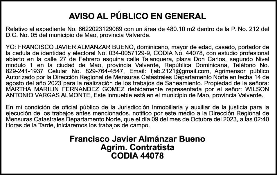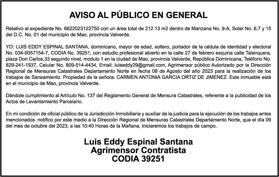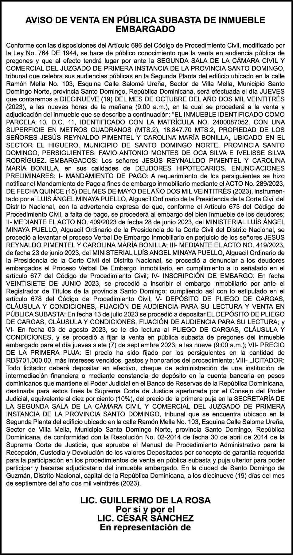 . 7 elCaribe, Miércoles 20 De septieMbre De 2023 LEGALES