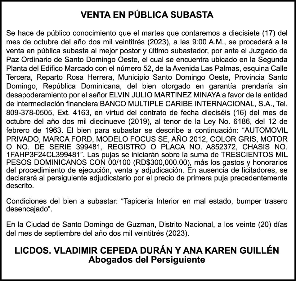 4. elCaribe, Miércoles 20 De septieMbre De 2023 LEGALES