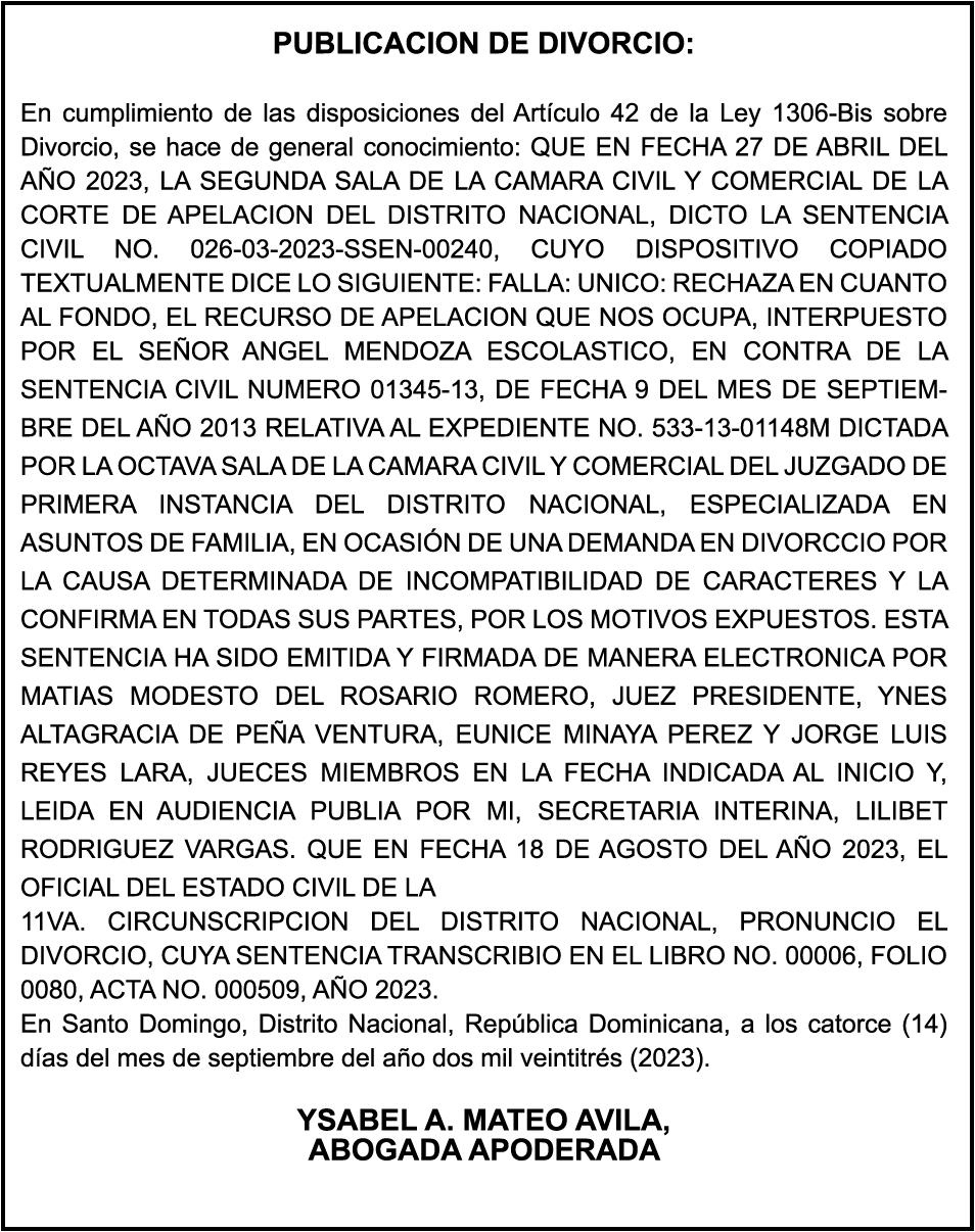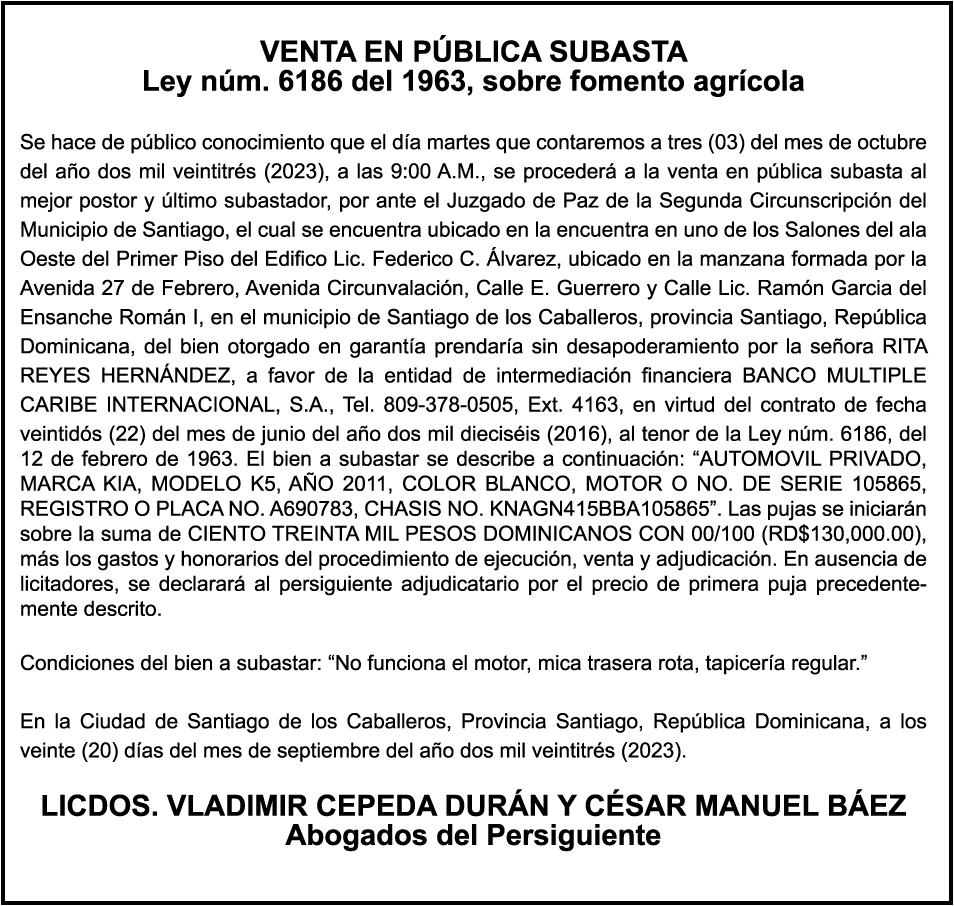 6. elCaribe, Miércoles 20 De septieMbre De 2023 LEGALES
