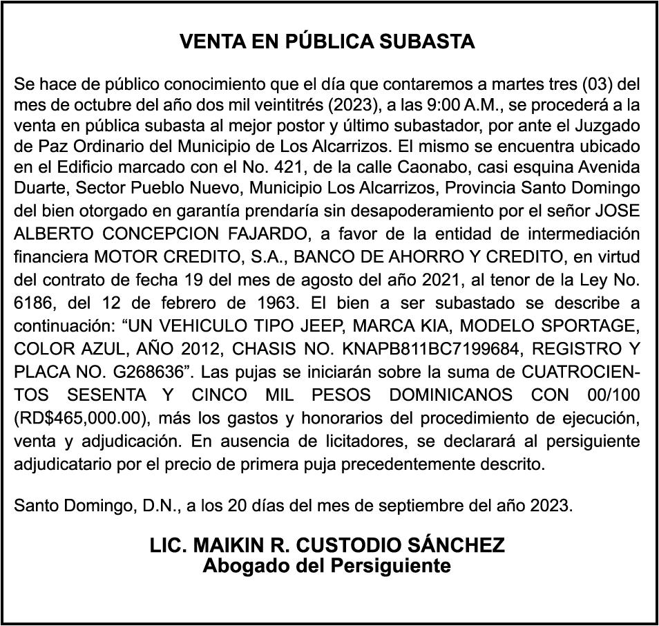 8. elCaribe, Miércoles 20 De septieMbre De 2023 LEGALES