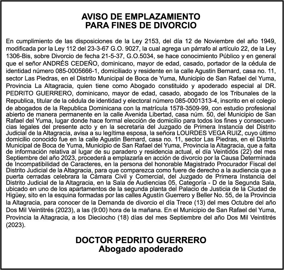2. elCaribe, Miércoles 20 De septieMbre De 2023 LEGALES