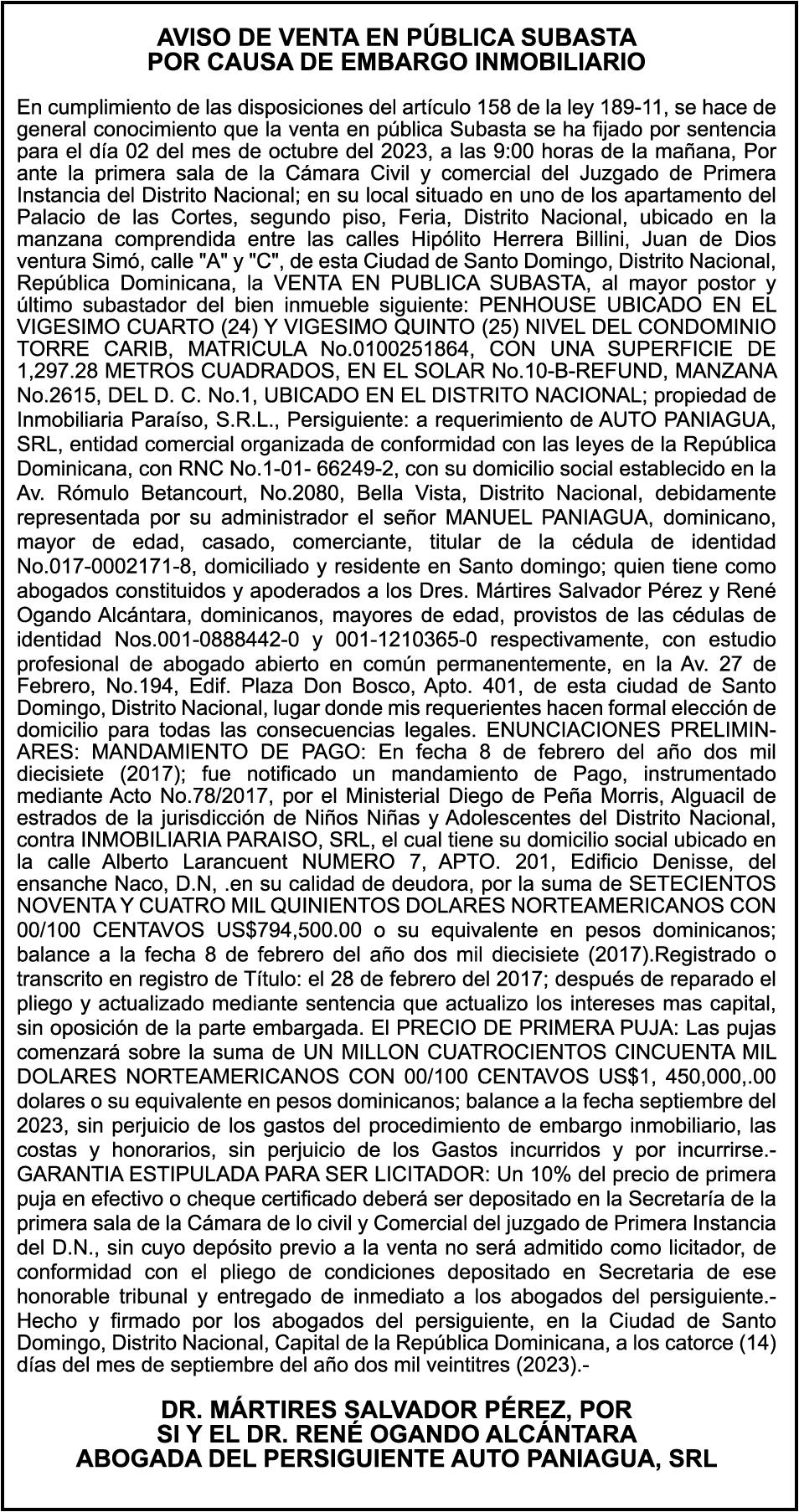 PESOS DOMINICANOS (RD$ 400,000.00) a favor de los señores